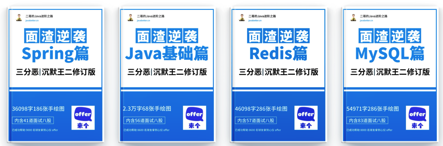 历经三年,终于整理完了这份经典的《面渣逆袭 2.0 版 PDF》。内容涵盖 Java、MySQL、Redis、Spring、消息队列、操作系统、计算机网络、分布式等等,一共 40 万+字,600 +张手绘图,帮助无数同学斩获 offer。