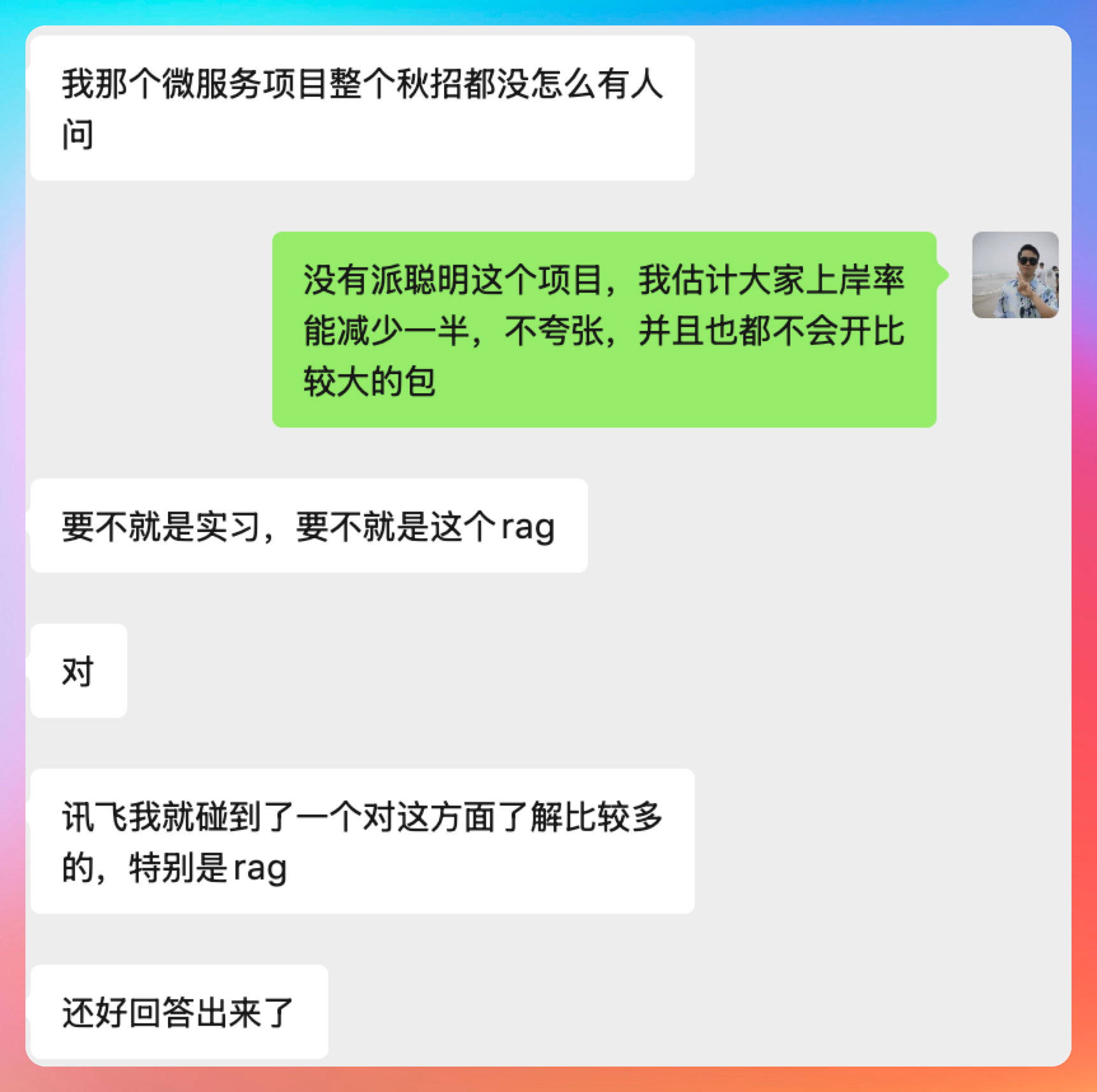 星球里也非常多球友在迫切地等待派聪明这个 RAG 项目,相信不用我过多的刻画,大家也都知道 AI 项目现在有多吃香。