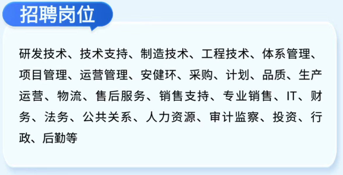 并且招聘的岗位种类非常多,除了研发技术、IT,其他各行各业都有机会。