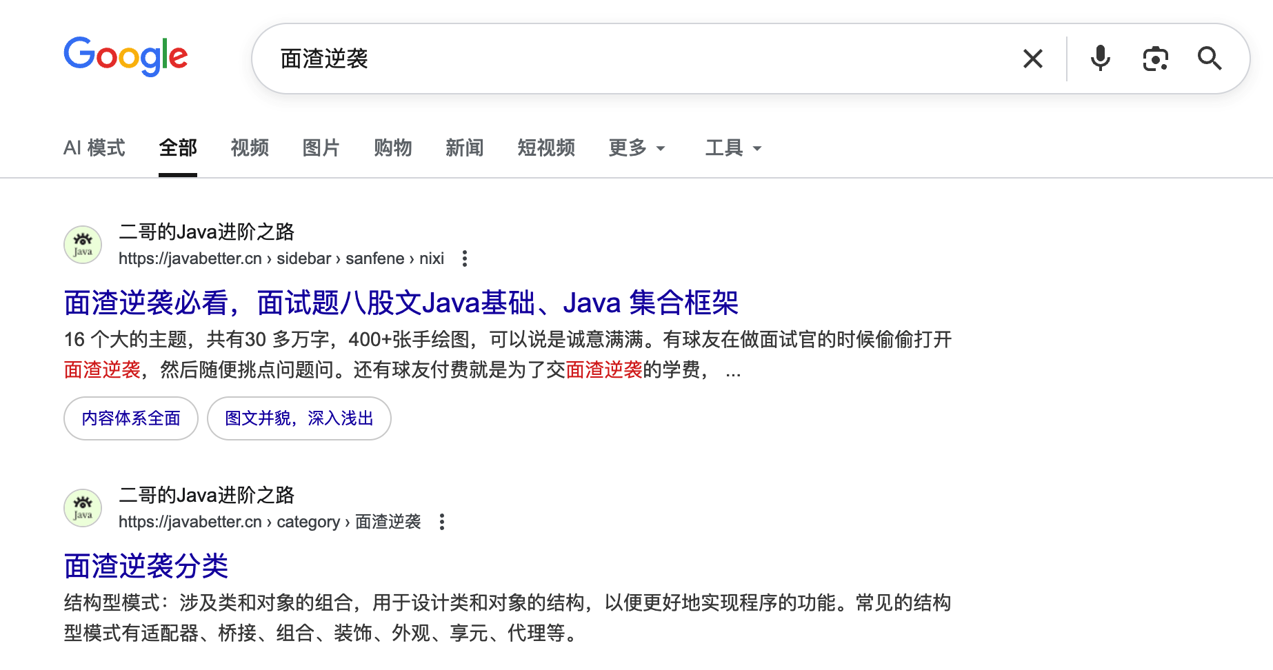 百度 AI 搜【面渣逆袭】也可以。