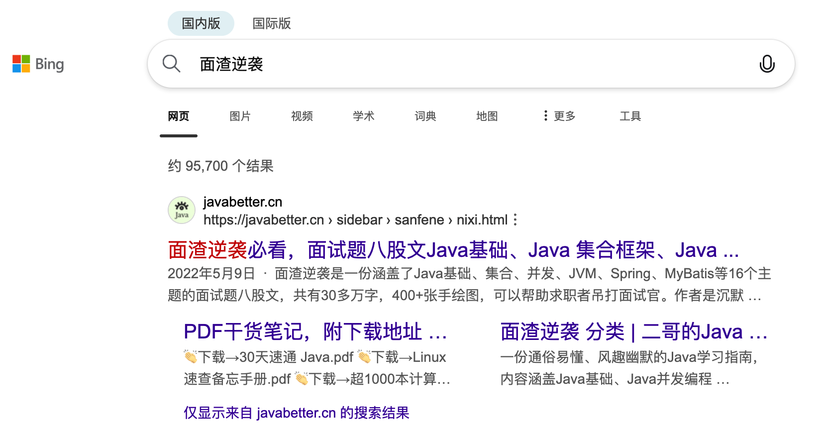 bing 搜【面渣逆袭】也是排名第一。
