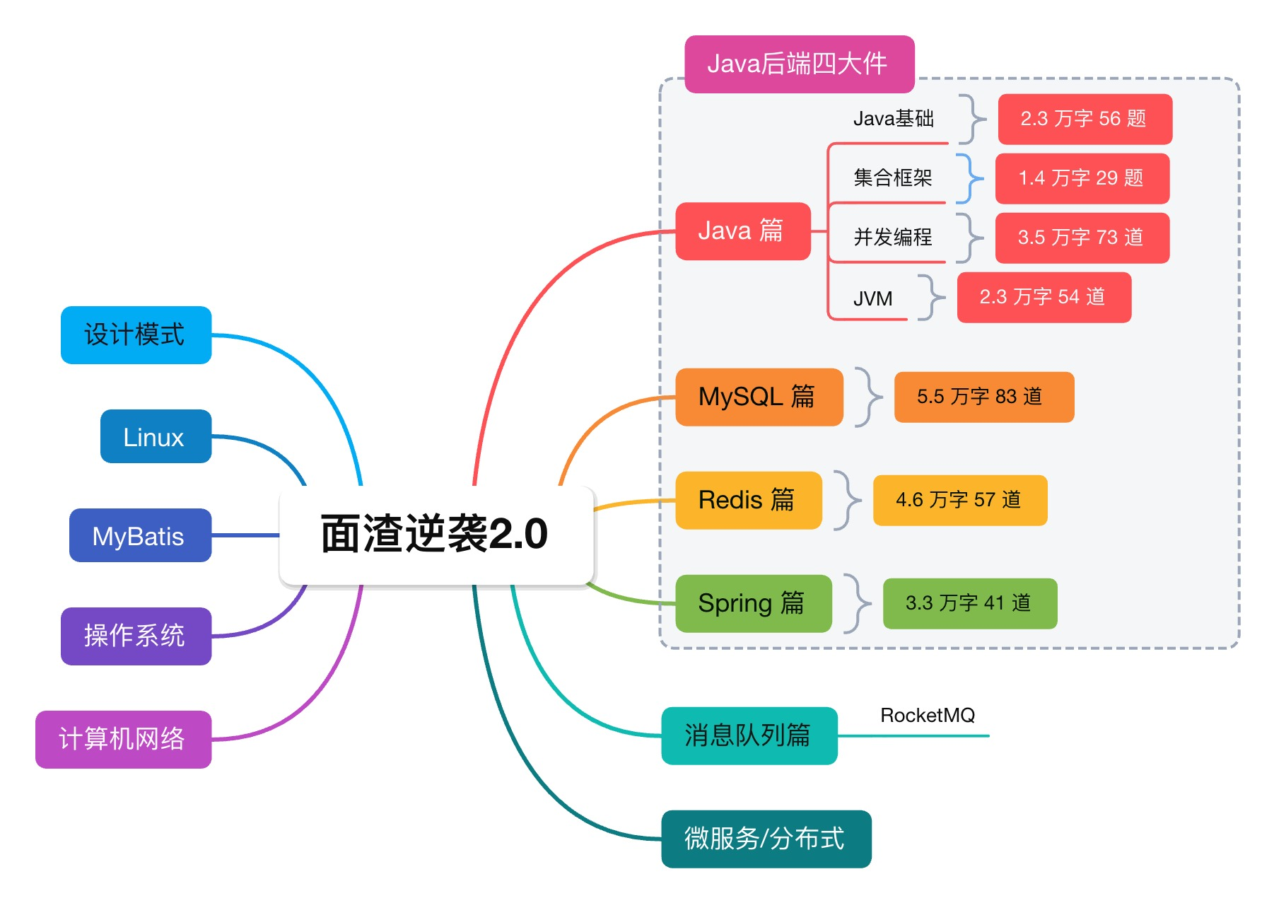 包括 Java 基础(JavaSE)、Java 集合框架、Java 并发编程(Java 多线程)、Java 虚拟机(JVM)、Spring、MySQL、Redis、MyBatis、操作系统、计算机网络、RocketMQ、分布式、微服务、设计模式、Linux 等等,助你拿到心仪 offer!