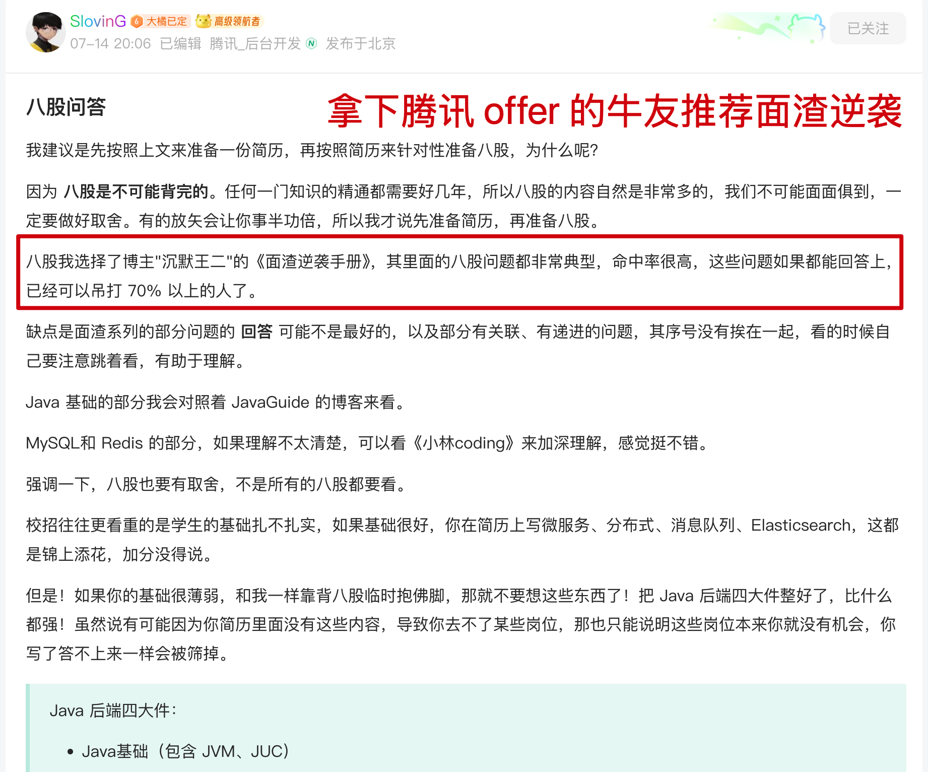 再来看一下牛客上吹捧面渣逆袭的,证据 2: