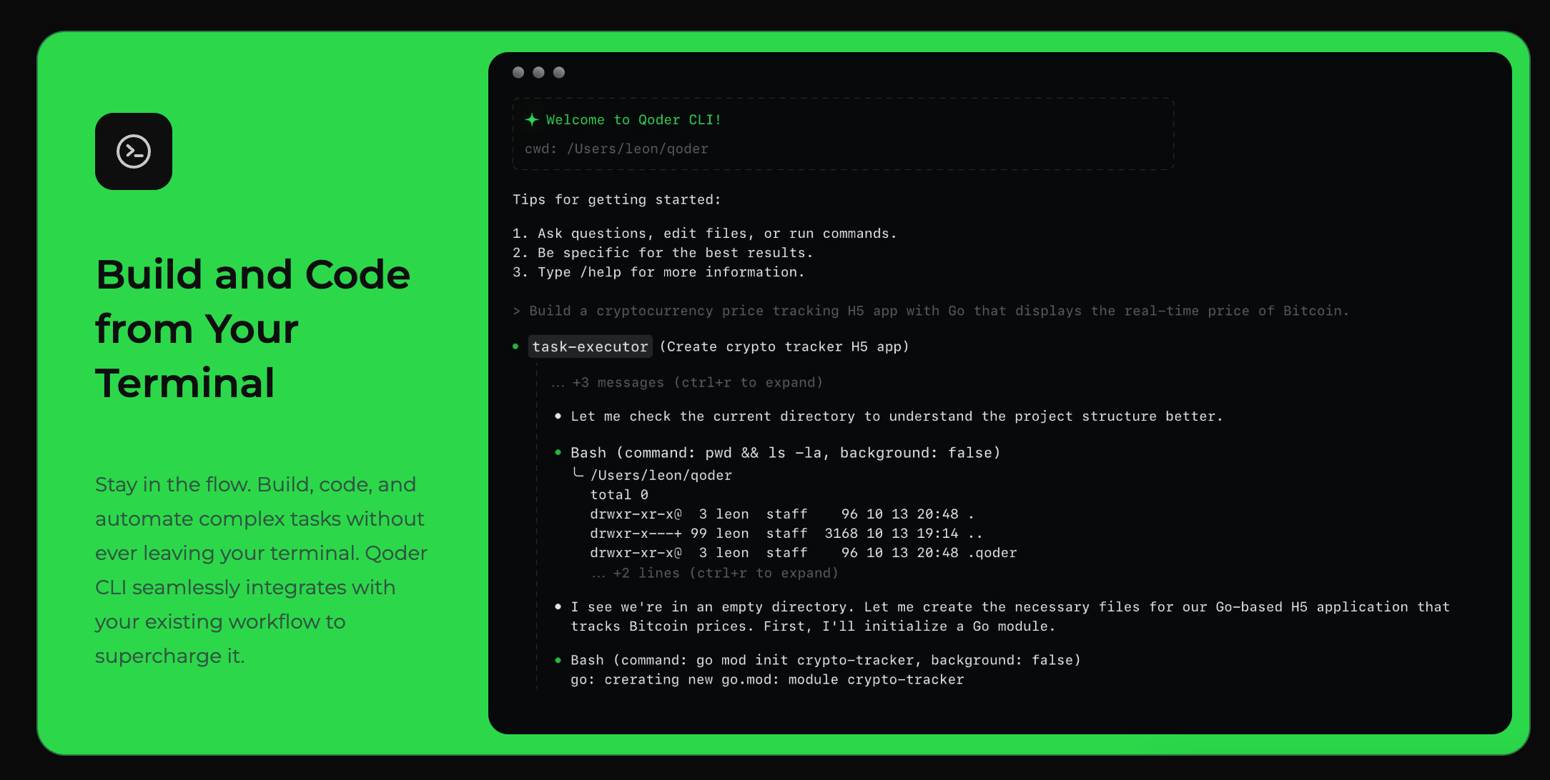 Qoder CLI 给我的第一印象不是“强”,而是“干净”。启动快得几乎像个 shell 命令,却能在后台唤醒完整的 Agent 框架。没有臃肿的守护进程,没有漫长的冷启动,只有一种令人安心的流畅。