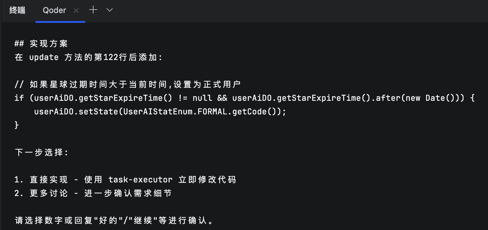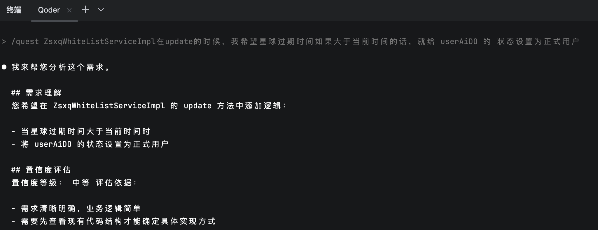 Qoder CLI 会先进行需求分析,然后去评估这次的修改注意事项,非常谨慎。