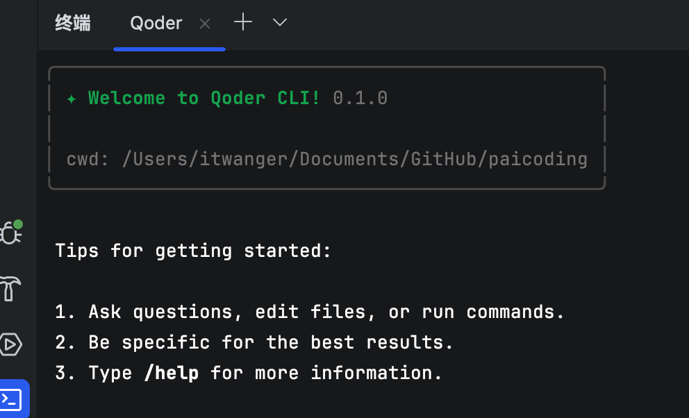 Qoder CLI 是一款强大的,基于终端的 AI 助手,可以和 AI 聊天交互,可以进行代码编写、测试,还可以集成 MCP Server。