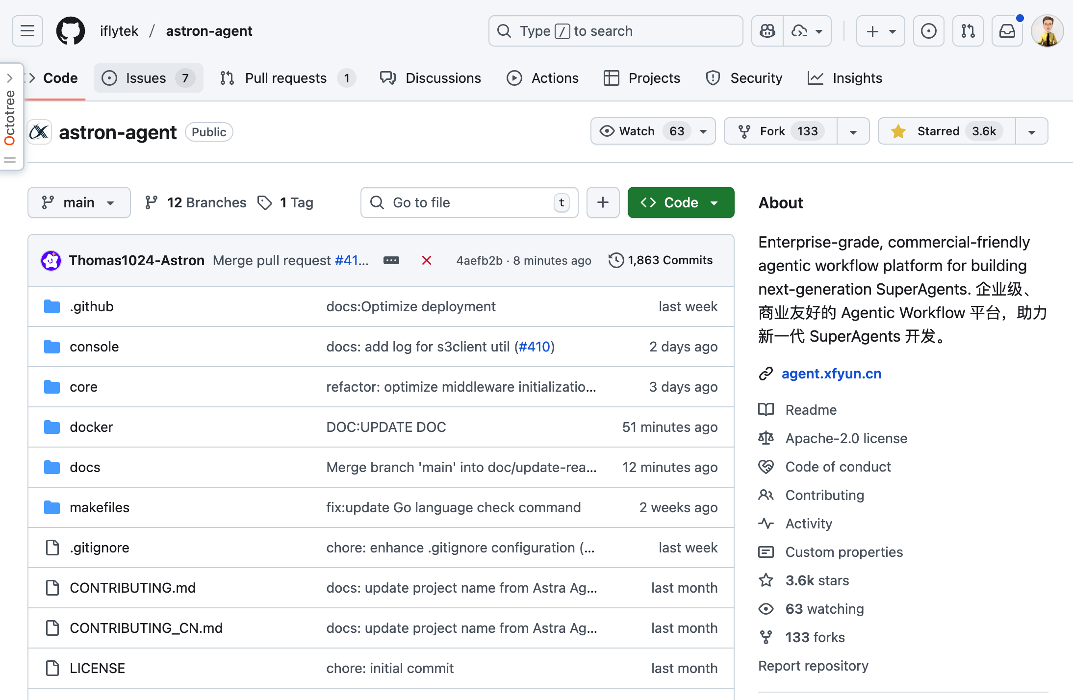 逛 GitHub 的时候,发现科大讯飞开源了一个顶级的 Agent 项目 AstronAgent,目前已经有 3.6k+ 的 star 了。