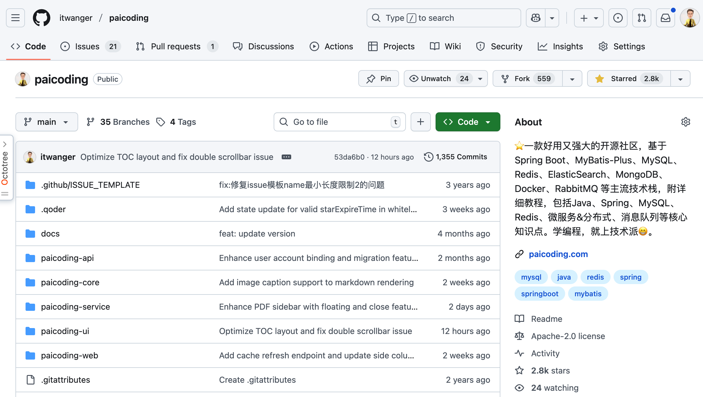 况且,如果大家真的能够吃透星球里的项目,比如说代码开源的技术派(GitHub 也有 2.8k star 了),我保证 3 年工作经验的 Web 开发工程能力,你都具备了!