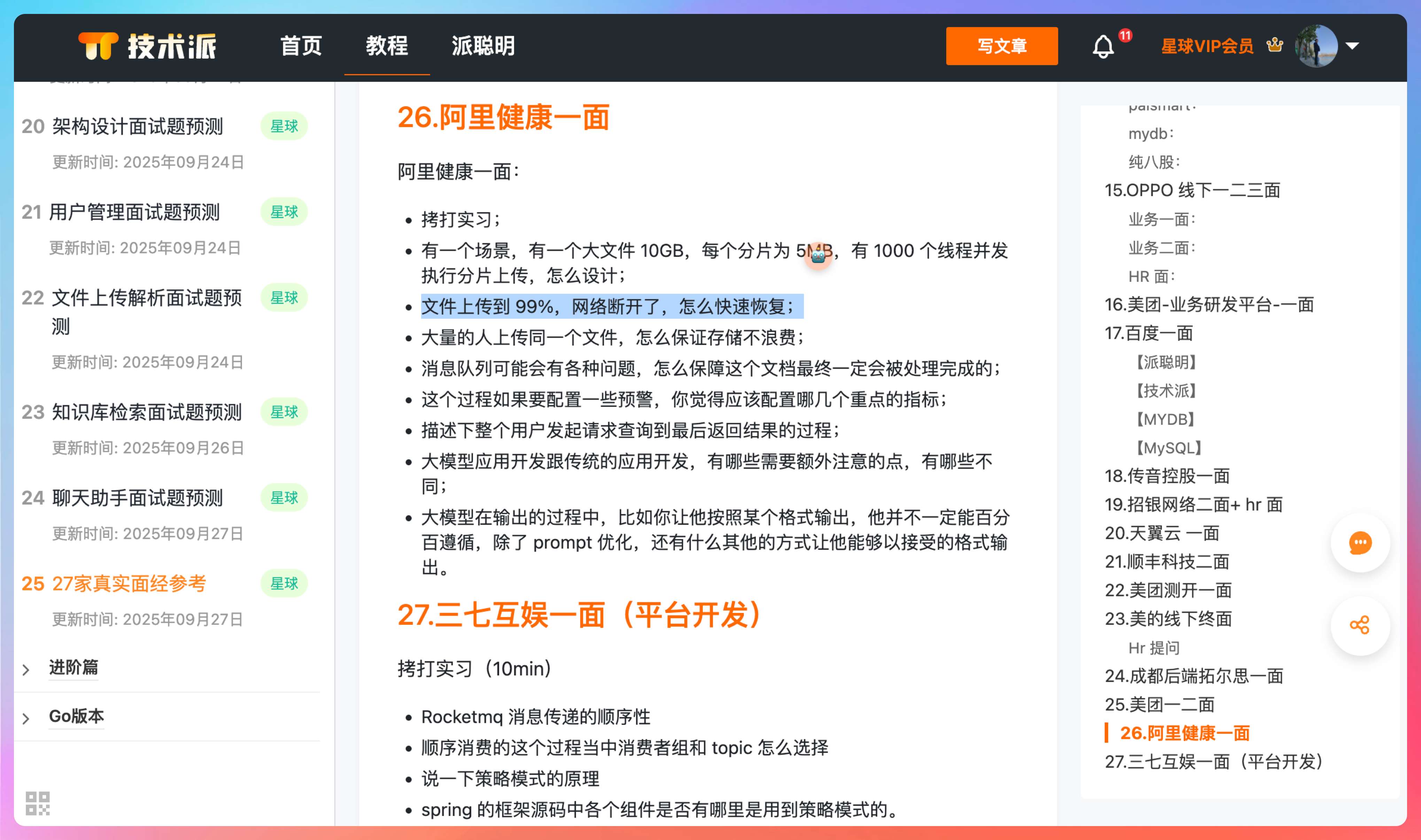 接下来给大家分享一个球友在面试阿里健康时的面经,他用的是派聪明 RAG 项目,完整题目我放到了下面这个帖子里。