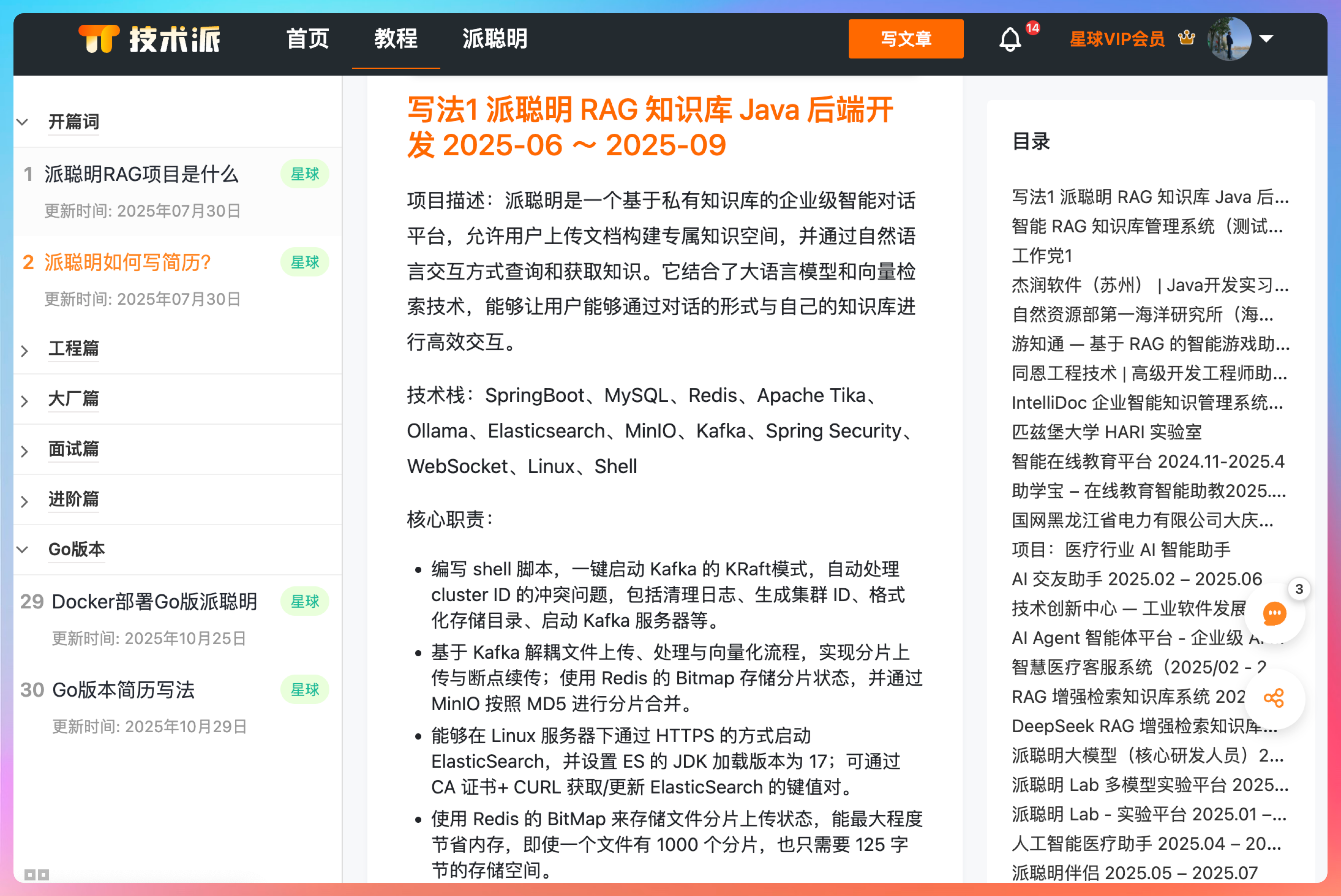 一个人可以走得很快,但一群人才能走得更远。二哥的编程星球已经有 10400 多名球友加入了(马上涨价),如果你也需要一个优质的学习环境,戳链接 🔗 加入我们吧。这是一个 简历精修 + 编程项目实战(RAG 派聪明 Java 版/Go 版本、技术派、微服务 PmHub)+ Java 面试指南的私密圈子,你可以阅读星球专栏、向二哥提问、帮你制定学习计划、和球友一起打卡成长。