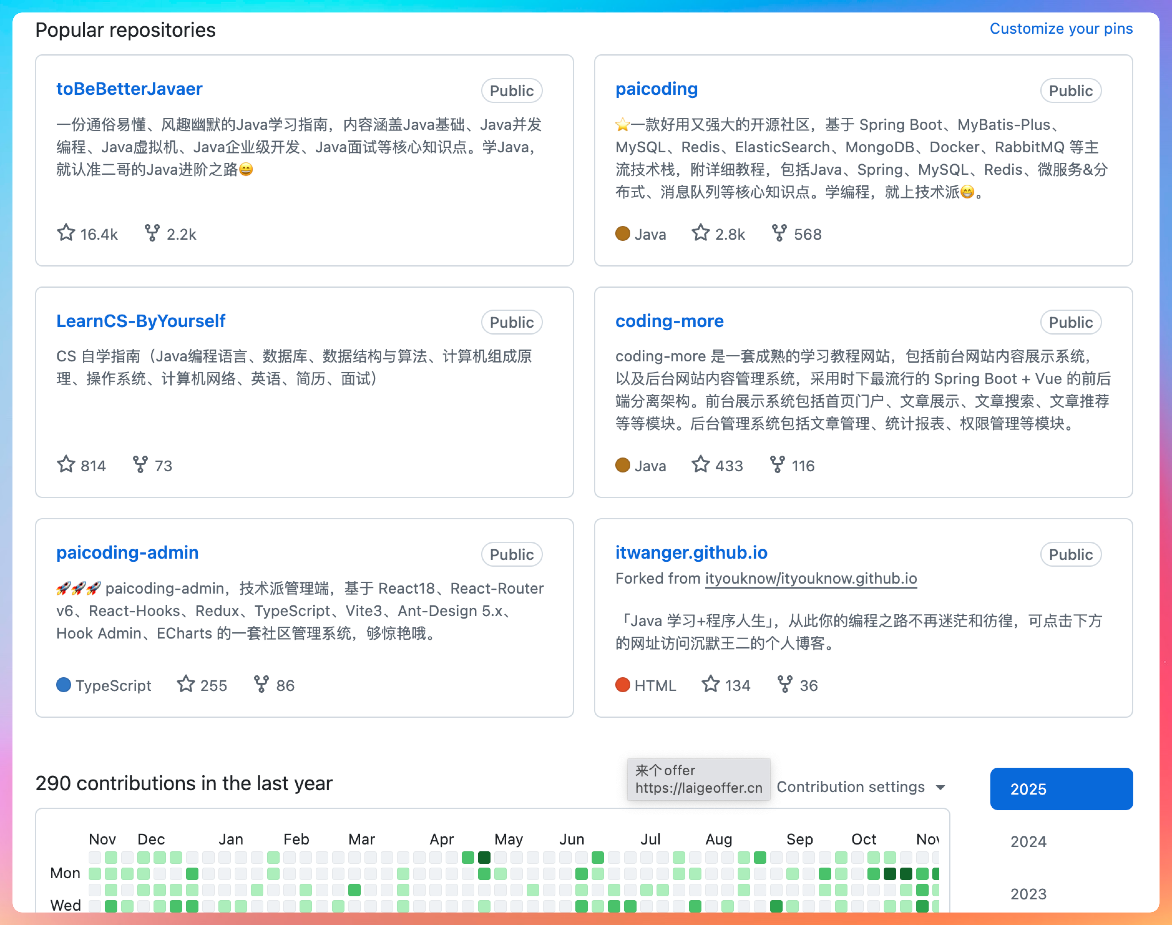 要多提交,让绿点多一些,每个项目都写一个 readme,然后给自己的主页布置一下,如果不知道怎么做,可以参考一下我的,很简洁。