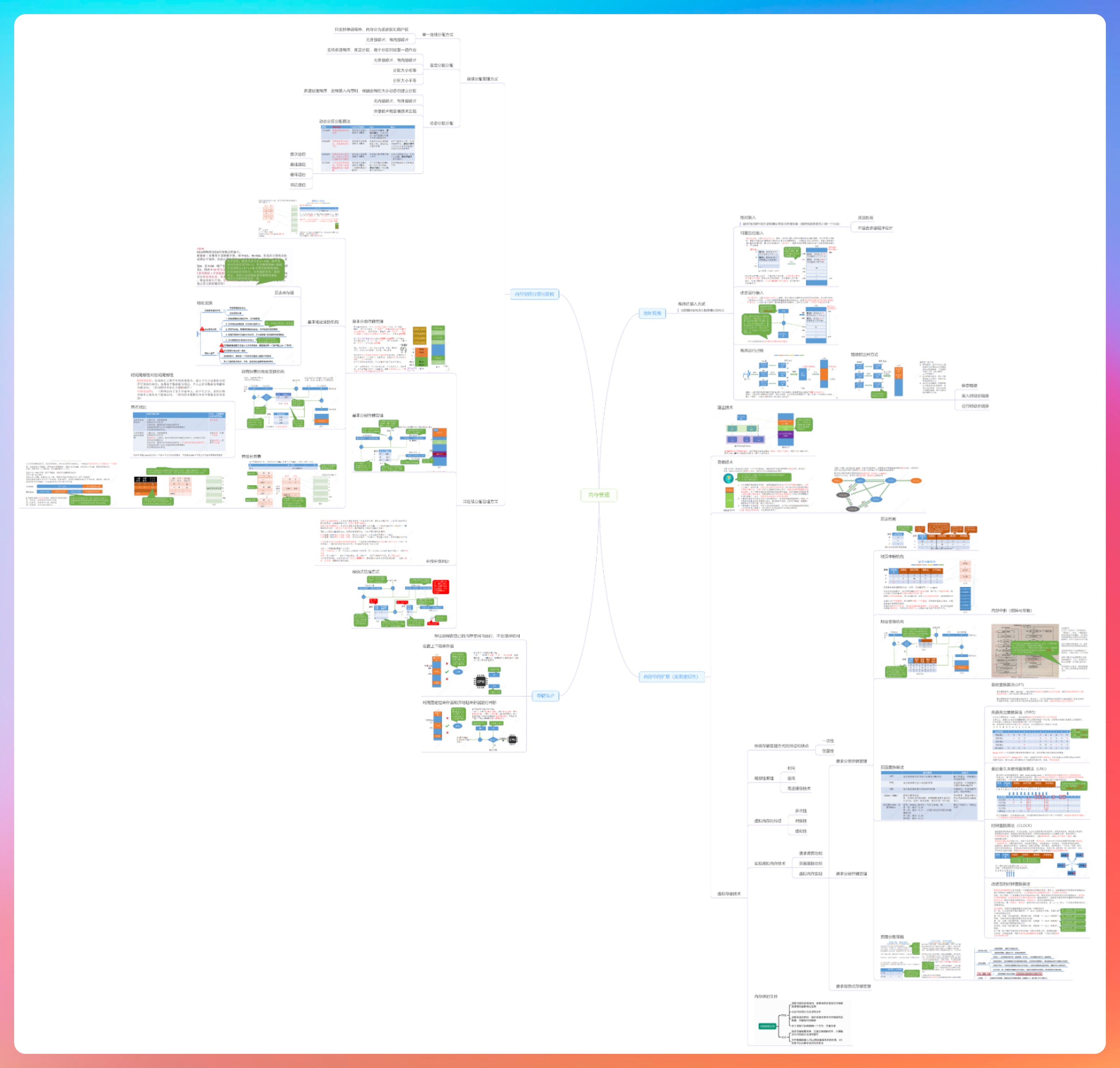 下面是关于操作系统内存管理的思维导图,任何一个支点放大后都是满满的知识。后面我真的要花点时间把他这些打卡记录整理出来,超级超级有价值。