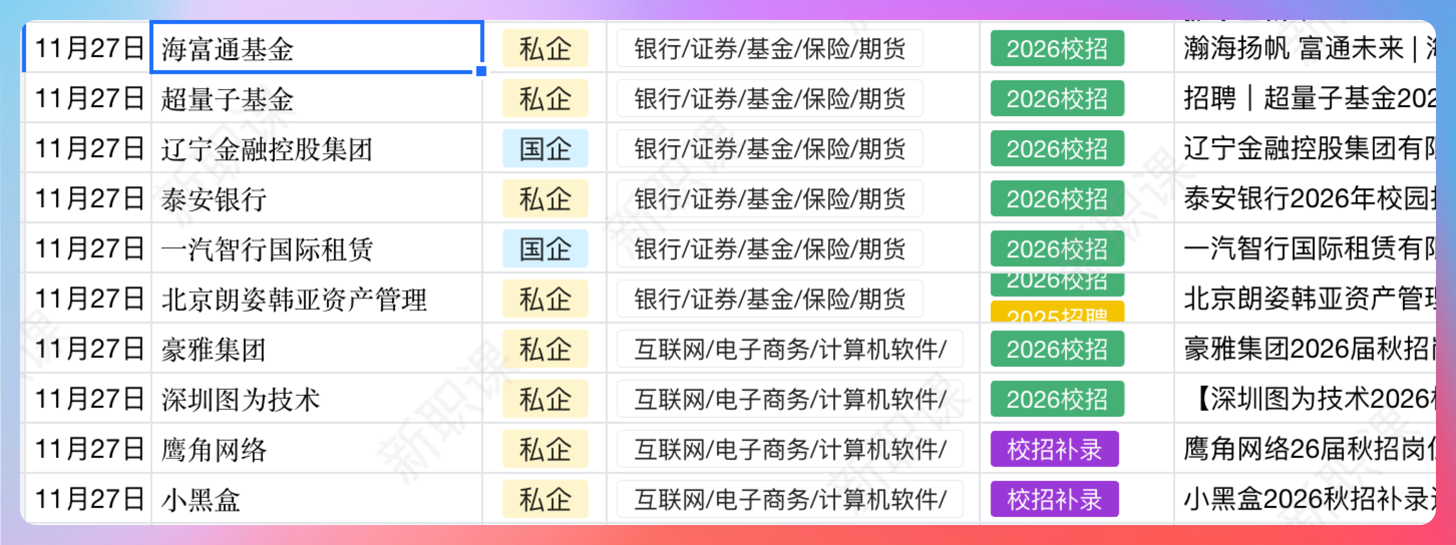 虽然已经是秋招下半场,但其实还有蛮多公司在发招聘公告,并且有些还是刚刚启动的 26 届校招。