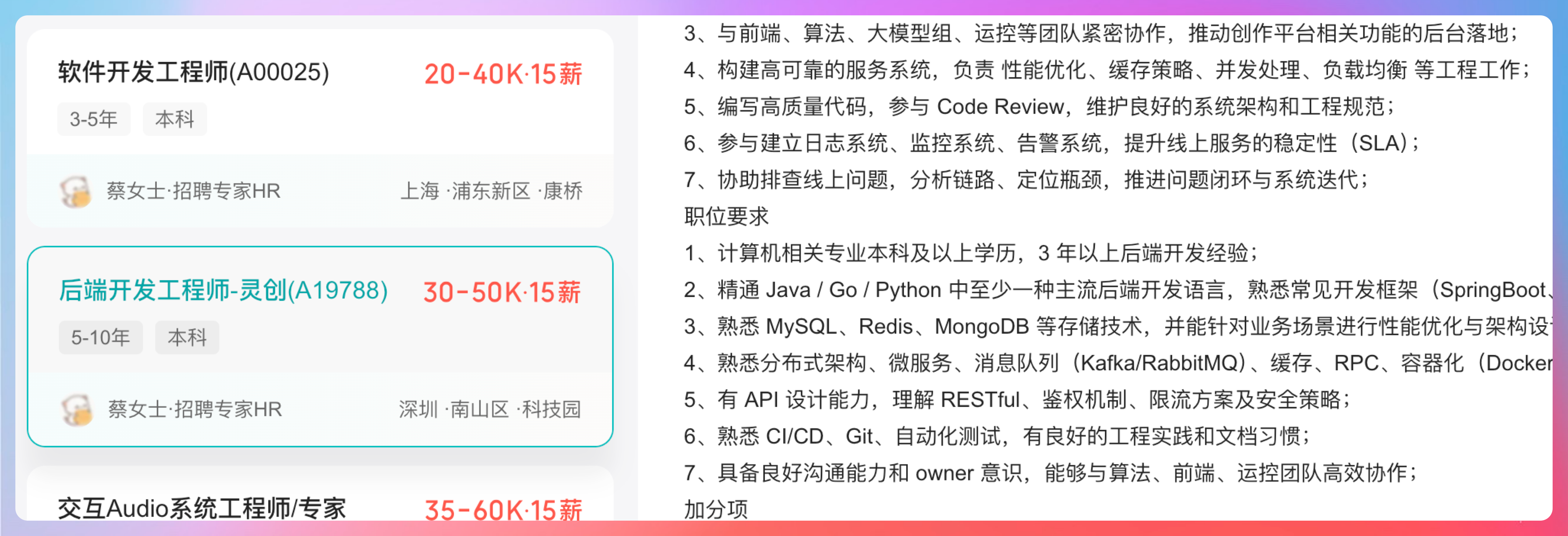 对于年后打算换公司的同学来说,确实可以趁年前这段时间去挖掘一下,找一找自己心仪的公司和岗位,看看人家的 JD 要求什么,及时更新一波自己的简历。