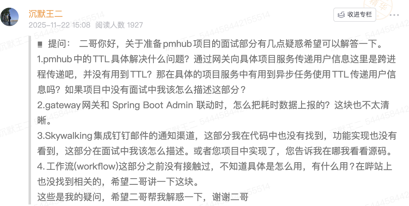接下来,分享一些 PmHub 的经典面试题,有想冲微服务开发经验的同学,都可以参考。