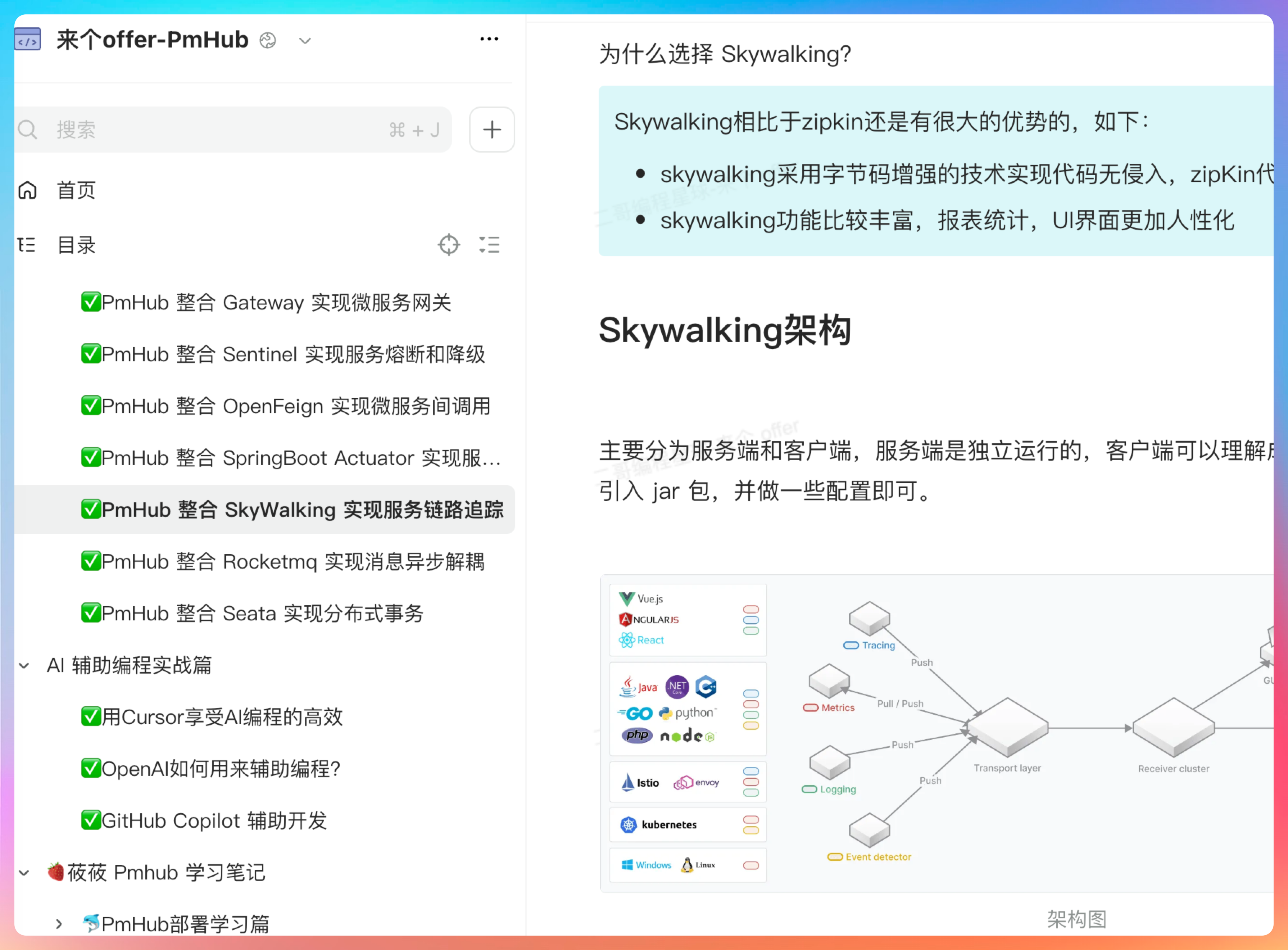3、你可以这样回答: SkyWalking的告警集成,我们遵循了‘ 配置即代码 ’和‘ 责任分离 ’的原则。