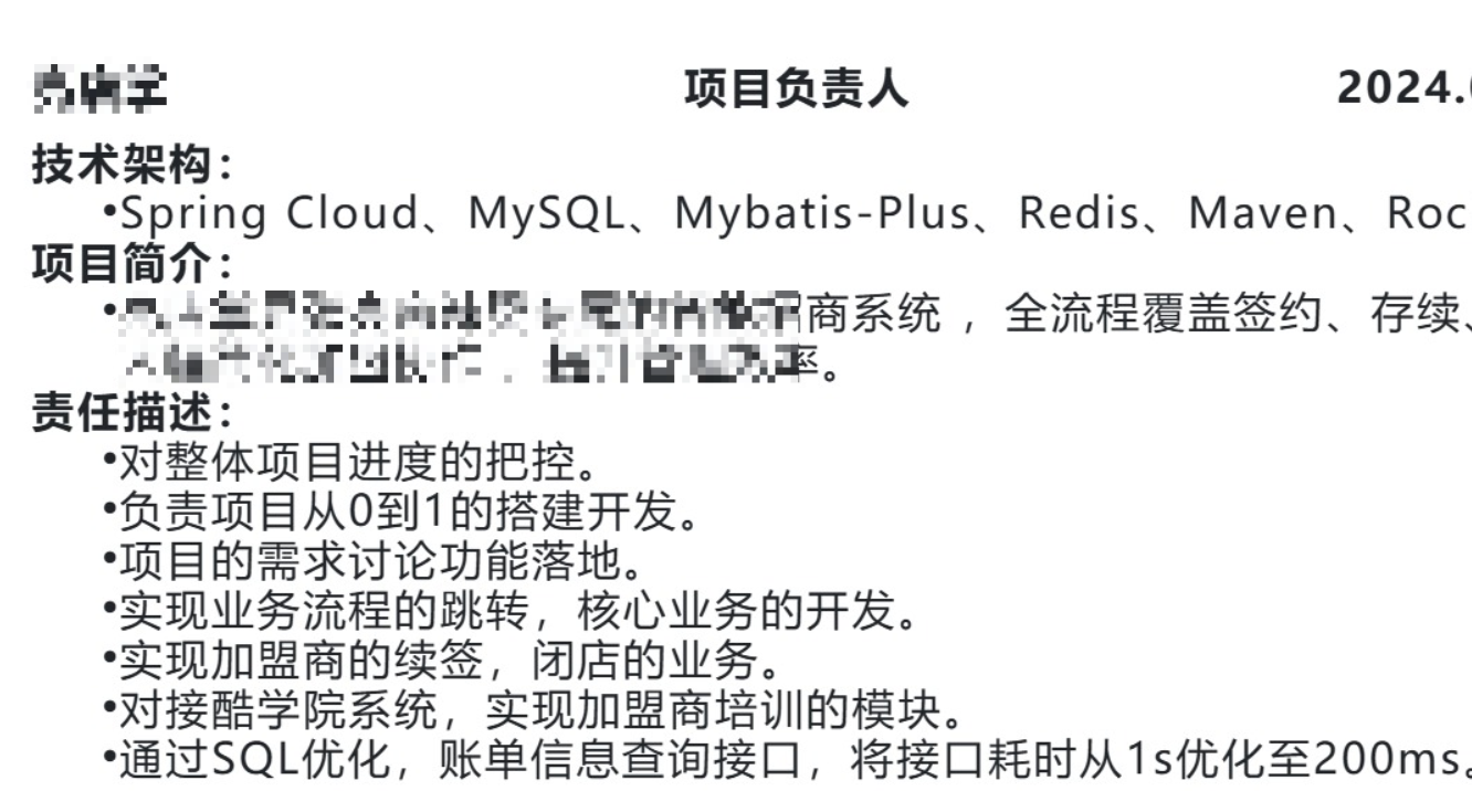 就我修改过的一些工作党的简历来说,有些写的蛮糟糕的,就比如说下面这份,提到了 Spring Cloud,但在核心职责中是完全没有表现出来的。