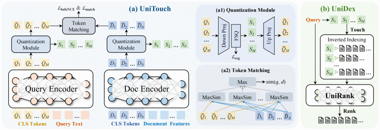 - 基于 VQ-VAE 实现视频/文本 Query 的语义离散化,构建语义 ID 空间,将传统 Term-based 倒排重构为 Model-based 倒排,实现跨模态统一召回。