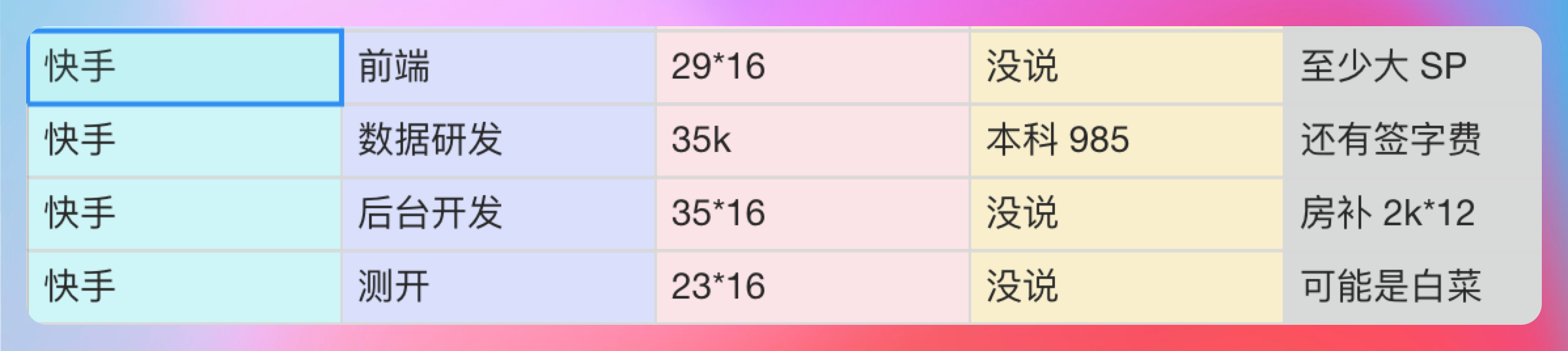 对比去年的数据,今年快手的薪资明显要高一些,我把《Java 面试指南》专栏中收录的信息给大家同步一下。