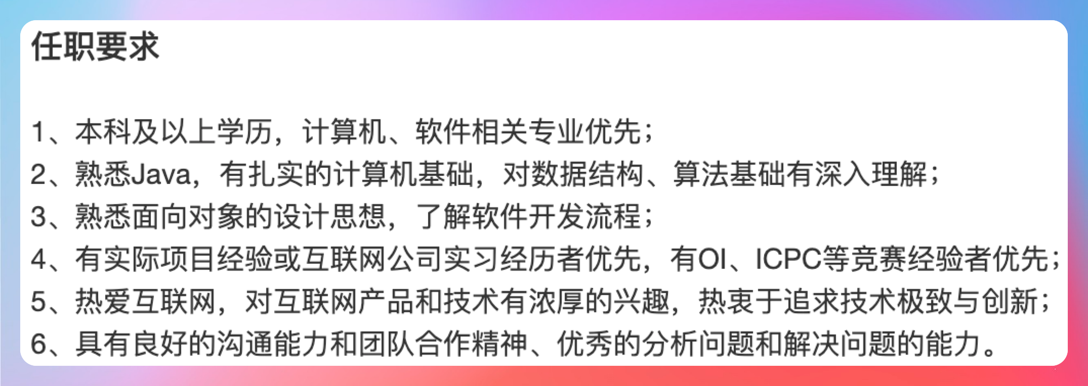 我去快手的官网看了一眼,他们的 Java 后端实习岗位里就明确要求一点,有实际项目经验或互联网公司实习经历者优先。