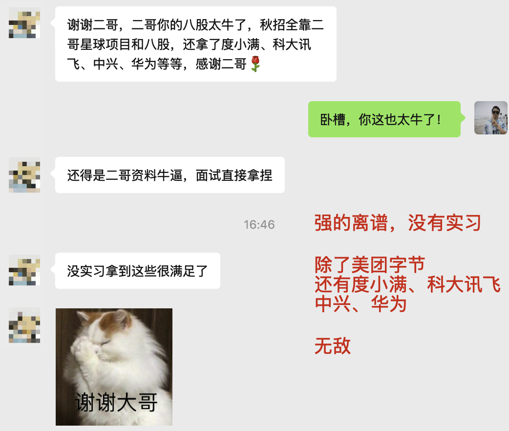 下图是之前一位在阿里实习的球友,修改简历时给我发的信息,她的原话是: