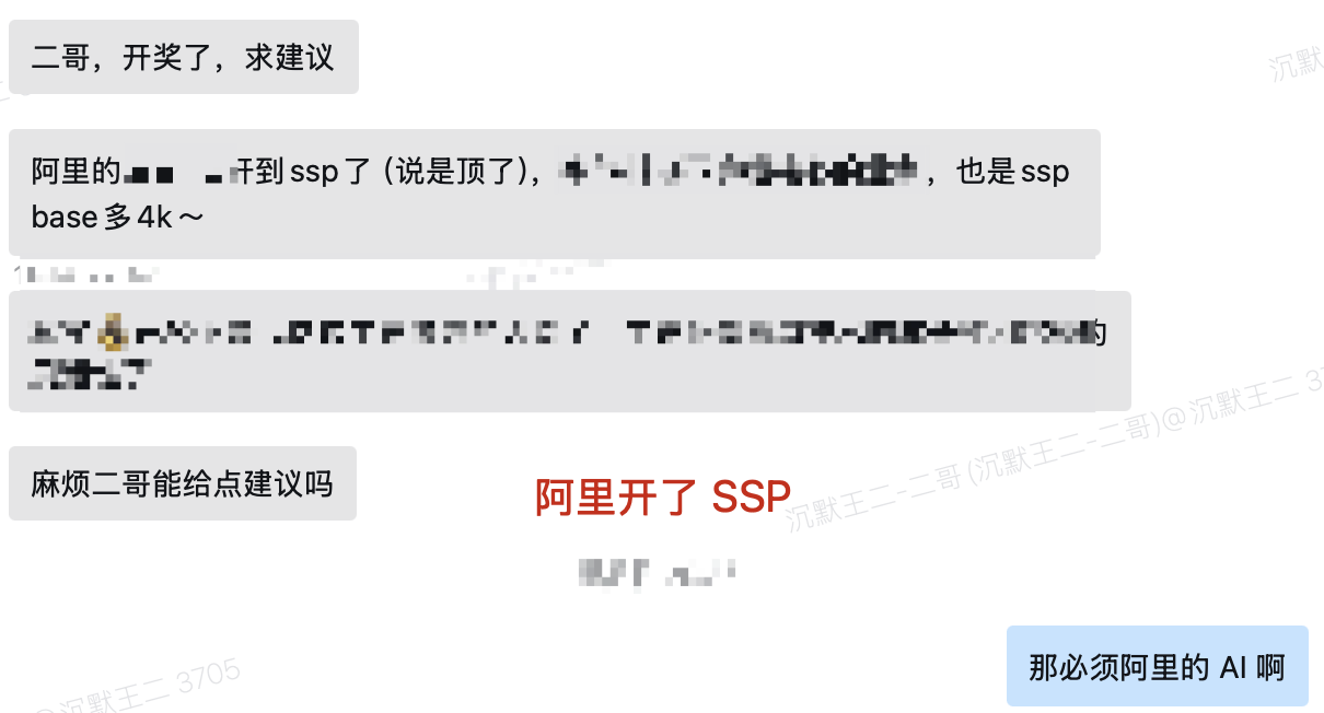 11 月果然是开花结果的日子,有球友报喜说阿里的 AI 岗开了 SSP,还有另外一个大厂 base 多了 4k,问我该怎么选。