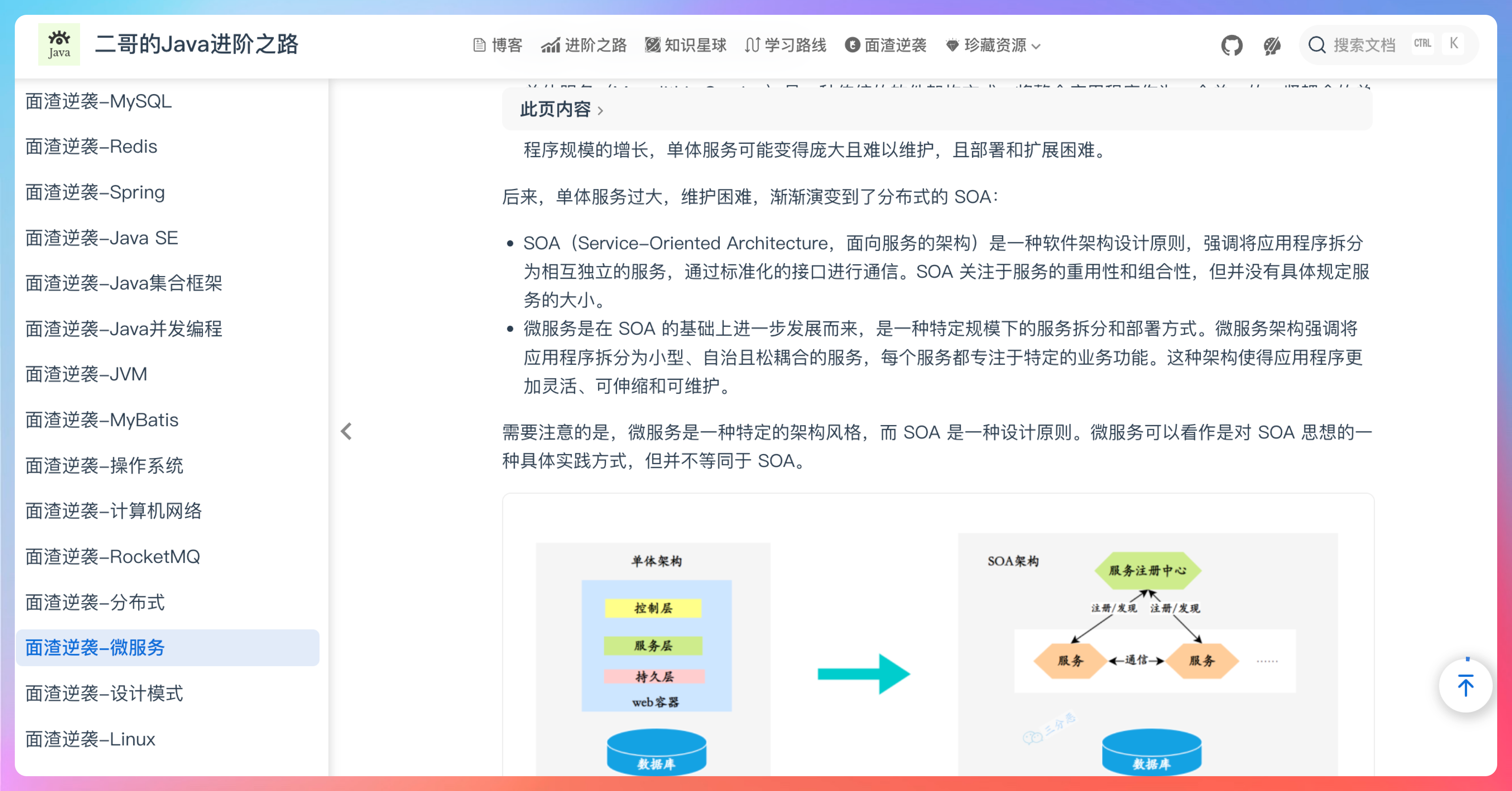 网址:https://javabetter.cn/sidebar/sanfene/nixi.html,微服务、设计模式和 Linux 也都有。
