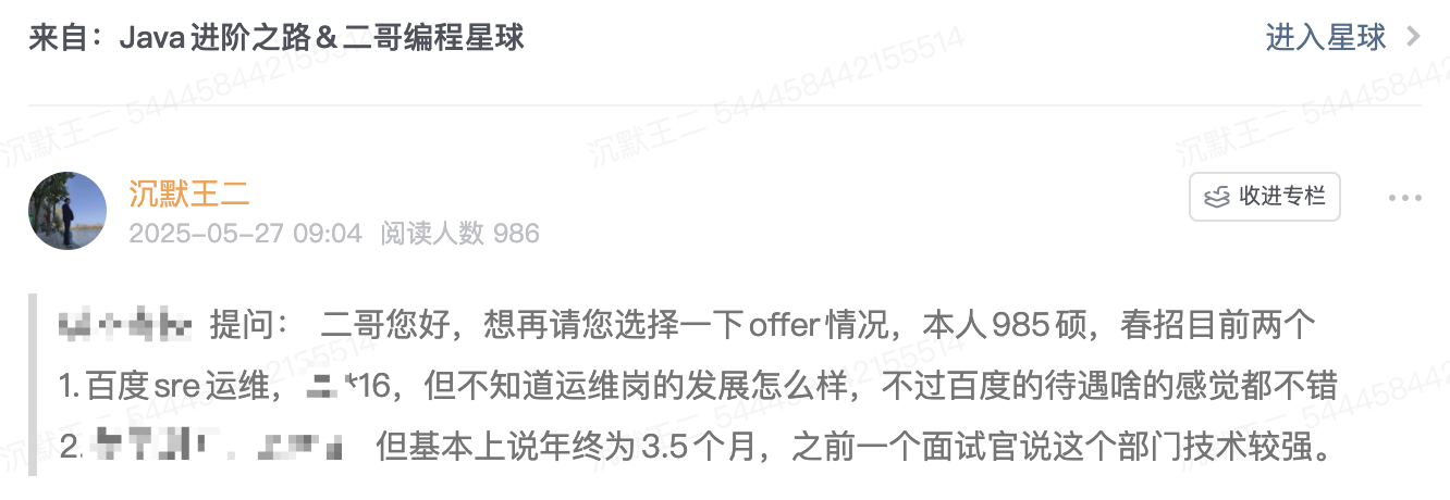 对于秋招结果不理想的同学,春招也是完全可以冲的,今年 5 月份,有球友拿到了百度 SRE 运维岗,薪资给的很不错。