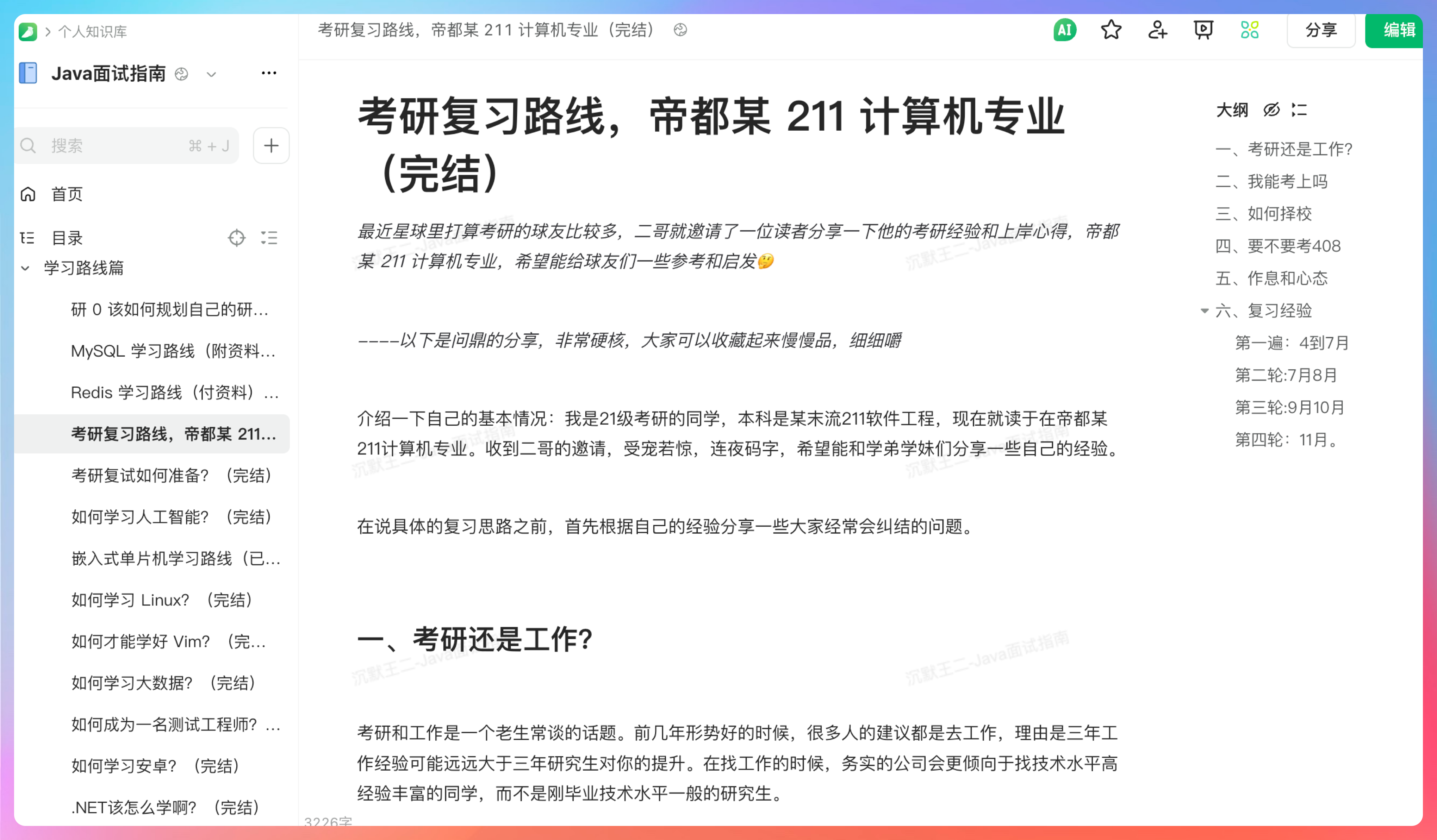 共 1000 多页,手绘图超过 300 张,为计算机专业的求职者铺平了面试中最后一环,可以说基本涵盖了面试的必问考点,我在此基础上更新迭代了第二版,更顺嘴,更容易背。