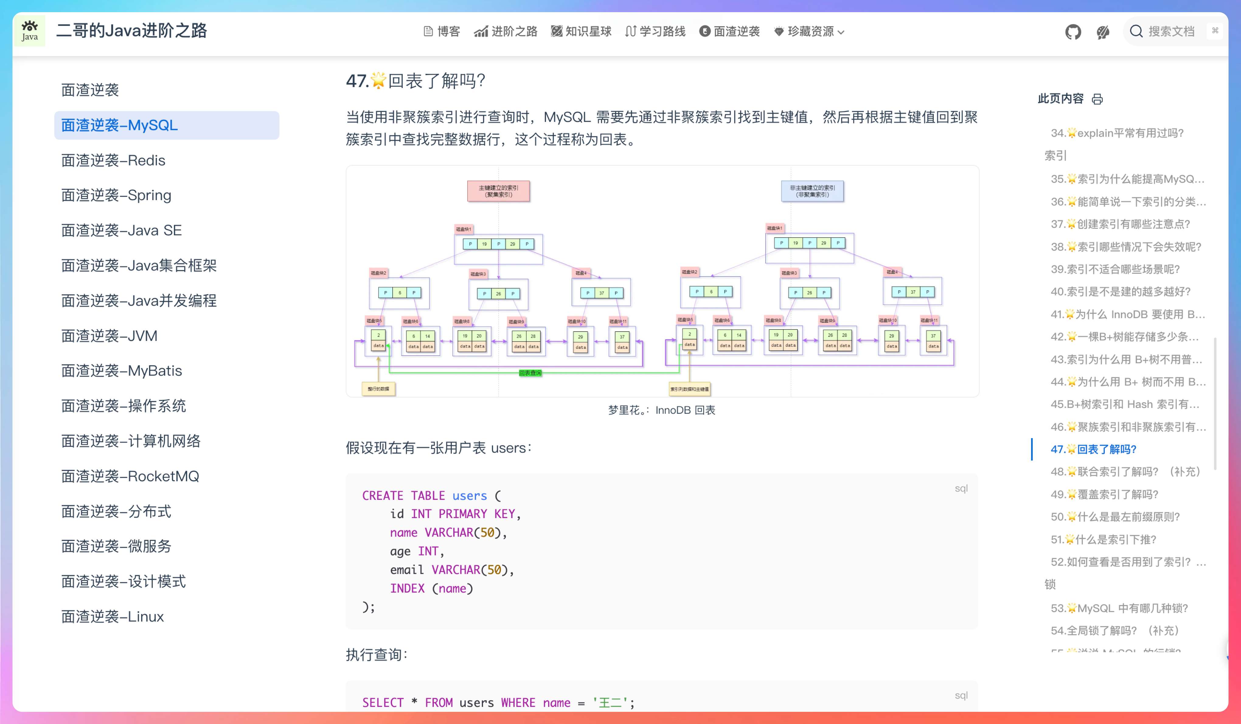 面渣逆袭 MySQL 篇:https://javabetter.cn/sidebar/sanfene/mysql.html