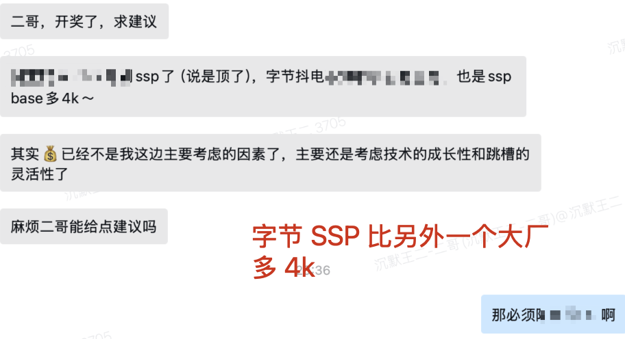 我随便上个证据,必须有理有据(😄。一位球友拿到了两个互联网大厂的 offer,并且都开了 SSP,字节 base 多了 4k,这可不是小数目,基本上够一次晋升了。