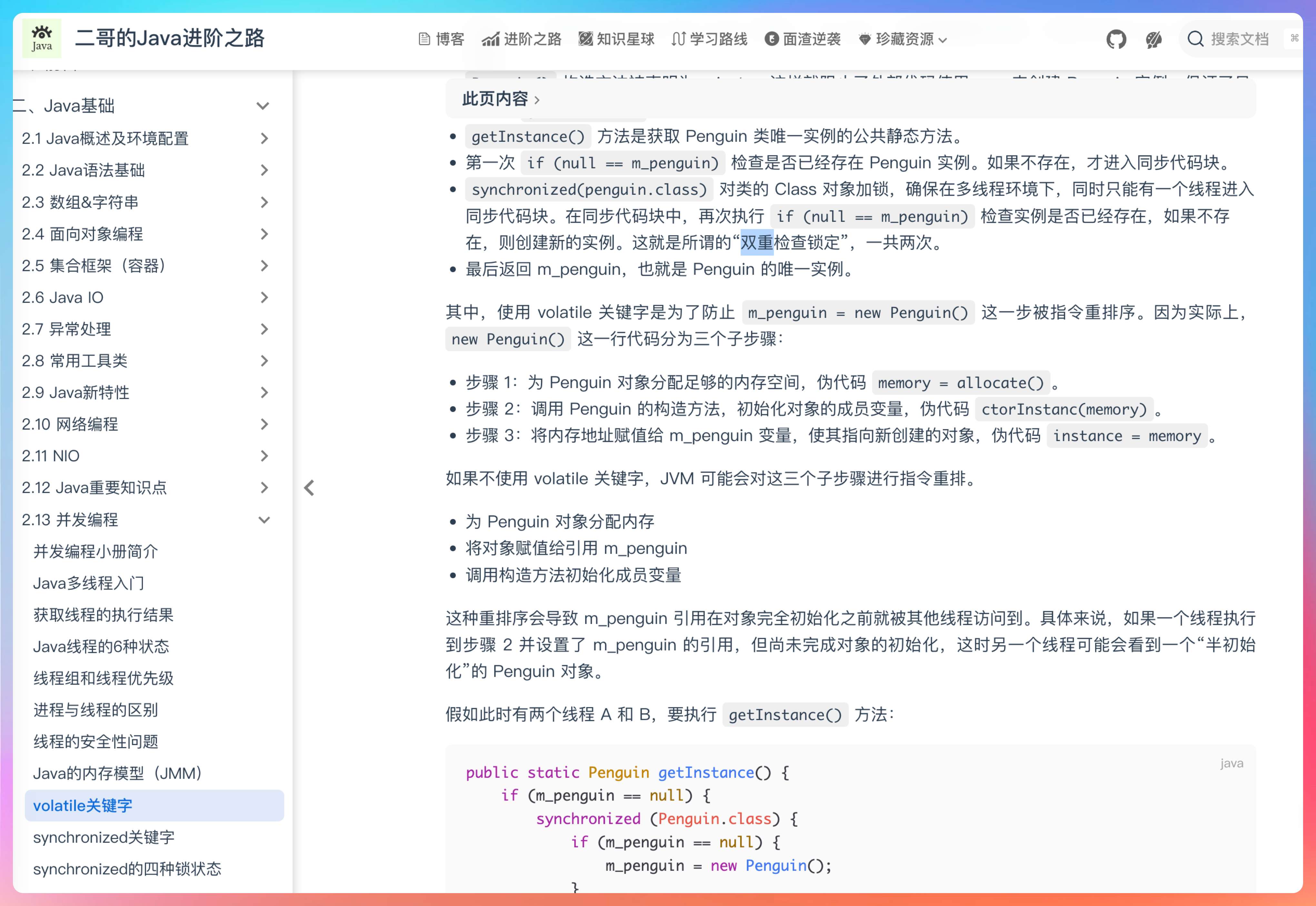 也就是在我自己读源码写博客的时候,我从 JSR-133 的介绍网站里面发现了双重检查锁在 JDK5 之前存在的问题,并且去写了一篇文章去介绍 Java 如何实现线程安全的检查锁,幸运的是,这正是我某一面的手撕之一。我并没有去刻意准备,但是很幸运,碰到了我真的会。