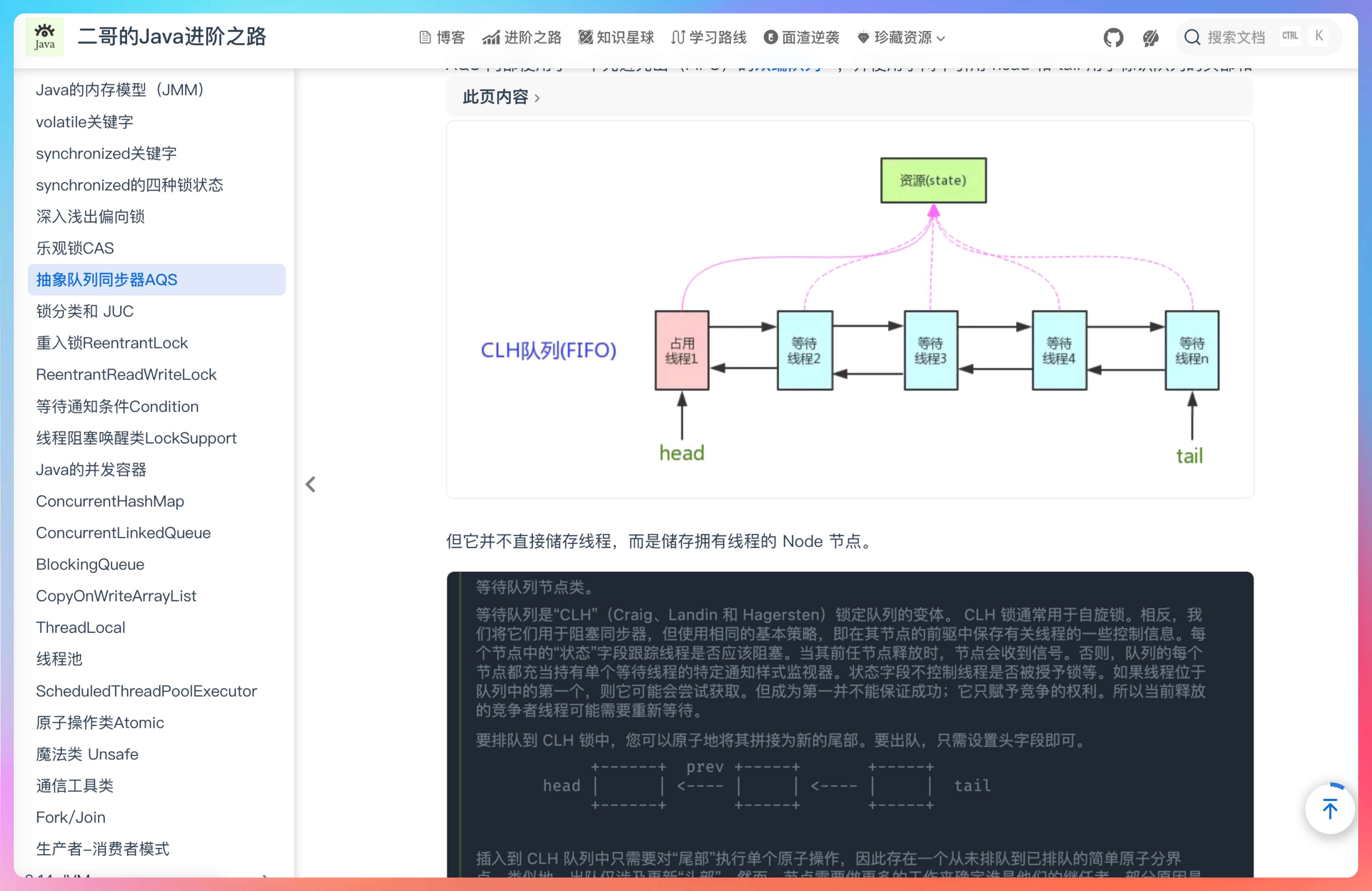 一面的时候,我从 Java 并发包的作者 Douge 讲到 JSR-166 再到 AQS,从其中的状态变量讲到 CLH 队列,讲完 CLH 队列我还能去讲 MCS 锁。面试官不打断我有信心就 AQS 聊个 5 到 10 分钟。虽然谈不上 AQS 专家,但也能唬一下面试官。