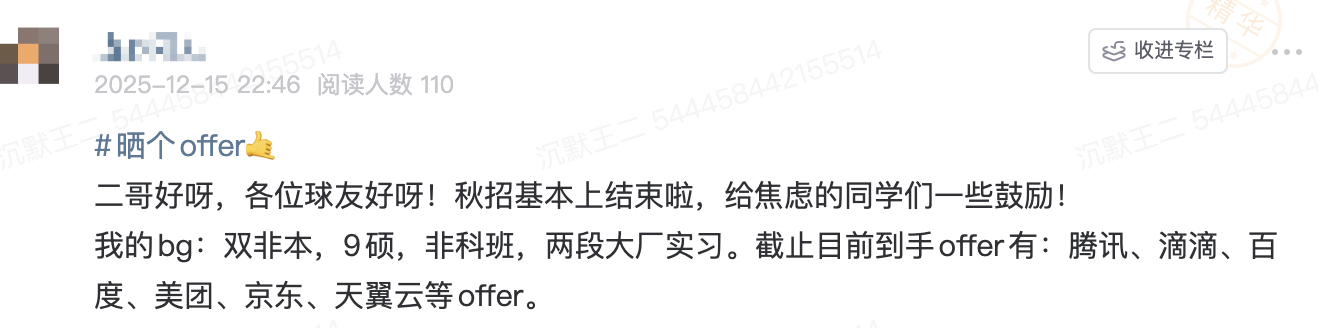 二哥好呀,各位球友好呀!秋招基本上结束啦,给焦虑的同学们一些鼓励!