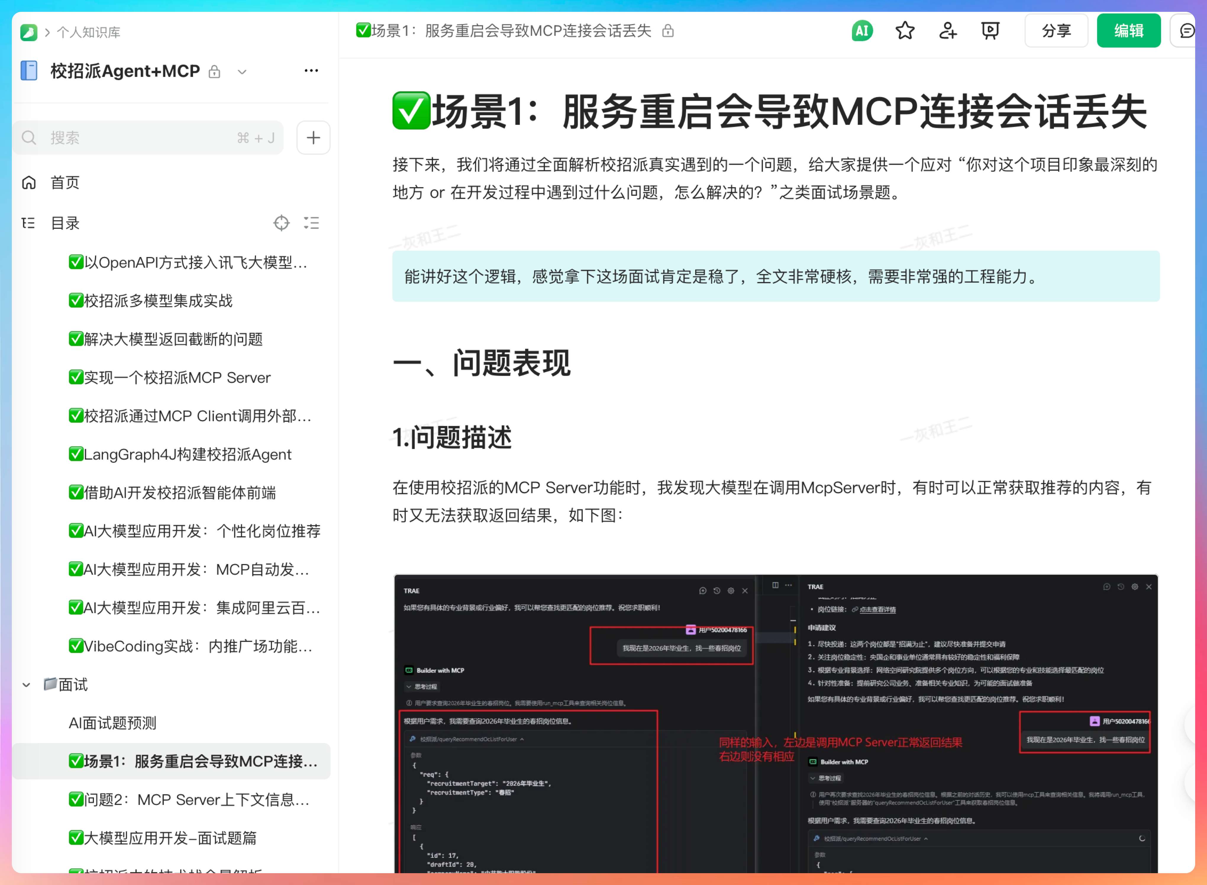 这部分面试题的答案会在校招派 Agent+MCP 项目中揭晓,结合实际的项目给出答案,大家可以敬请期待。