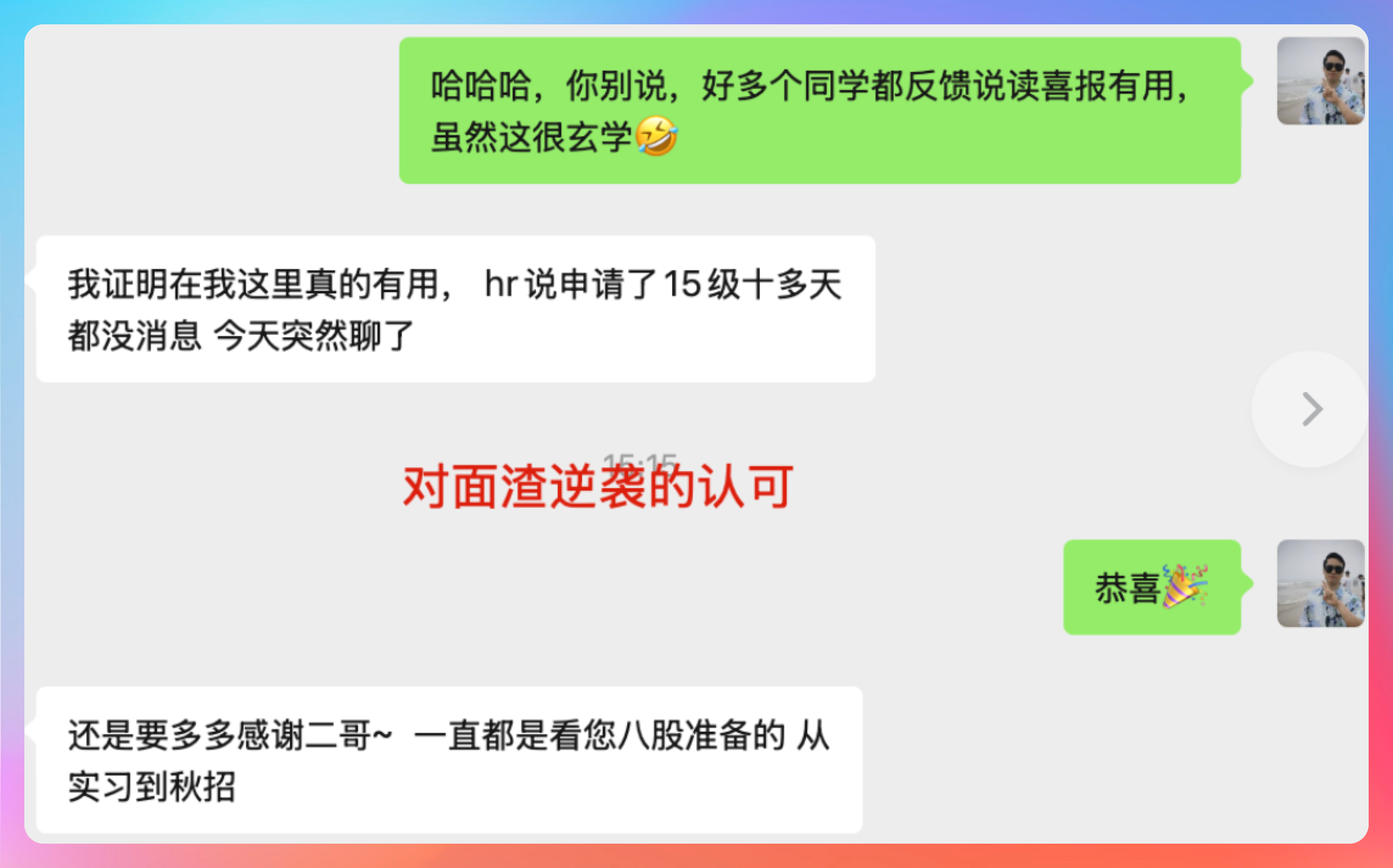 你别说,真别说,有好多同学私信我多发喜报,说有用,搞得很玄学(🤣)。