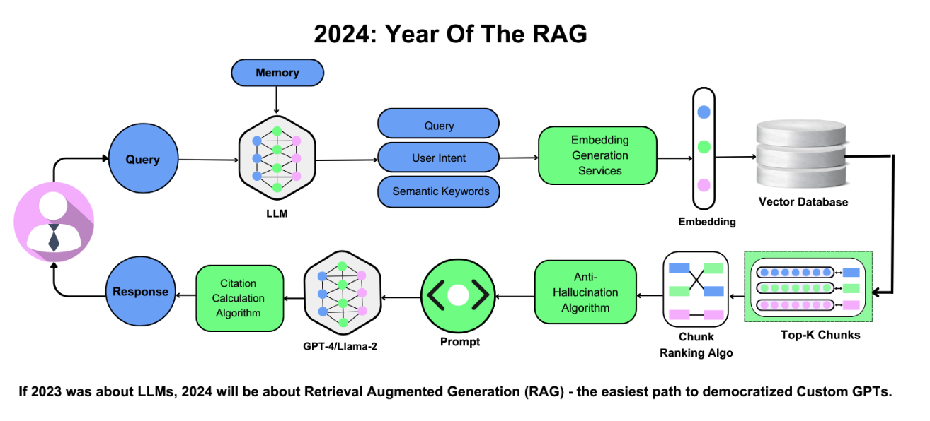 RAG 就是 Retrieval-Augmented Generation,检索增强生成。简单来说就是在大模型生成回答之前,先从知识库中检索相关的信息,然后把这些信息作为上下文提供给大模型,让它基于这些真实的数据来生成更准确的回答。