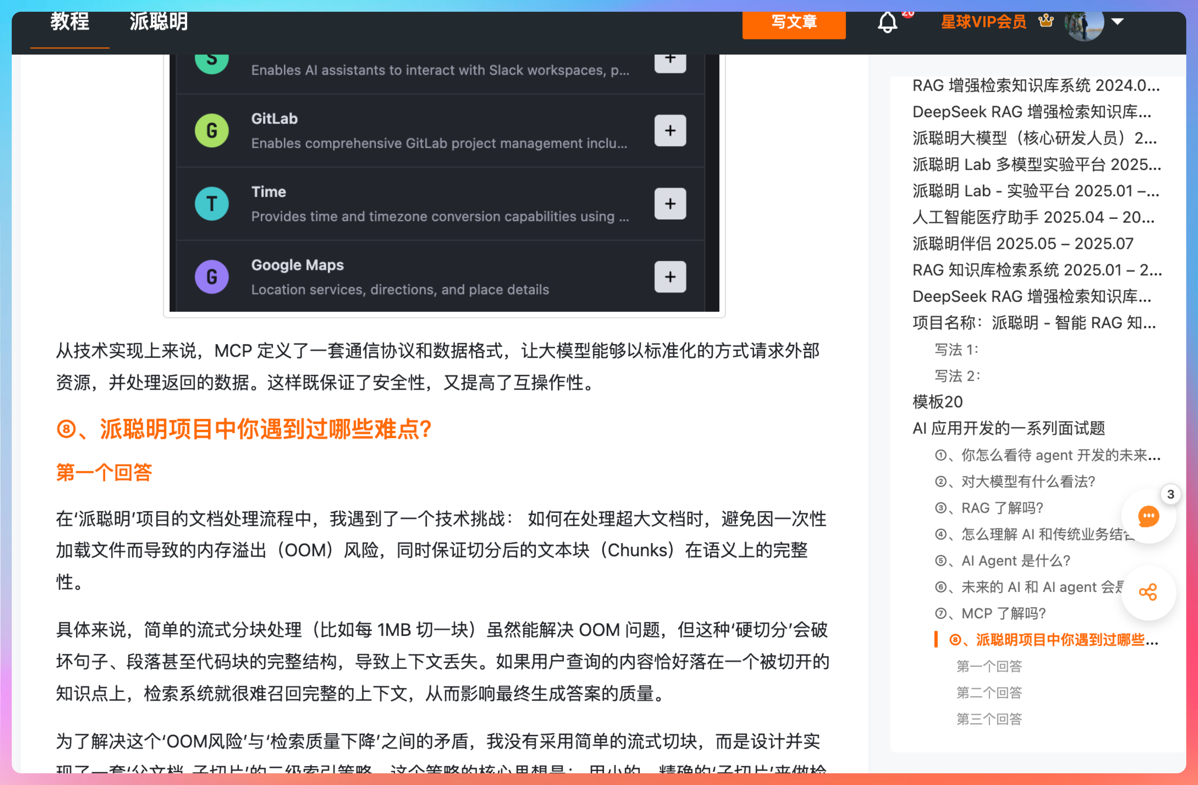 就像很多球友给我反馈的,在准备日常实习的时候发现面试官很喜欢问派聪明 RAG 这个和 AI 高度相关的项目。
