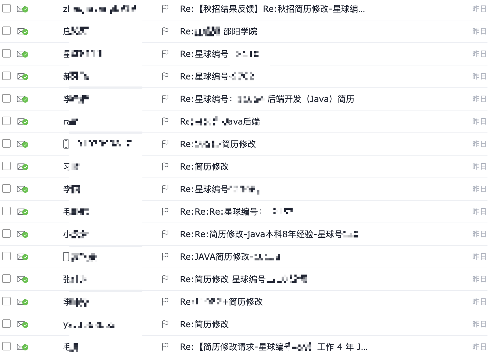 这是昨天我修改过的一部分简历,有 27 届的,有 28 届的,有工作8 年的。