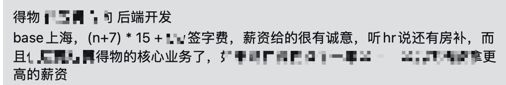 贴个喜报吧,有球友得物后端开了,base 上海,开了一个非常有诚意的薪资,SSP 没问题,HR 说还有房补,业务非常核心,比较心动。