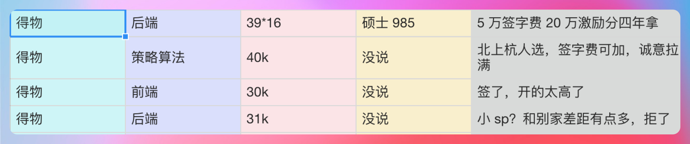 - 策略算法,开了 40k,北上杭任选 base,签字费还可以 a,诚意拉满;