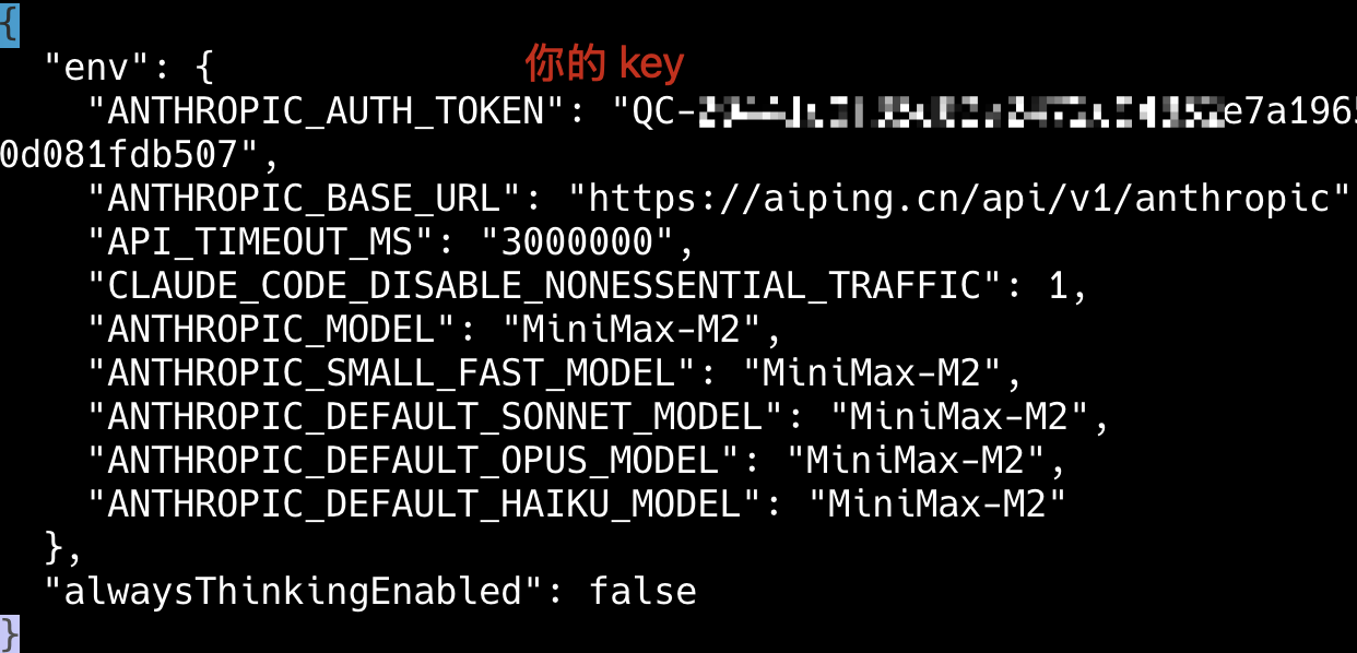 "ANTHROPIC_DEFAULT_SONNET_MODEL": "MiniMax-M2",