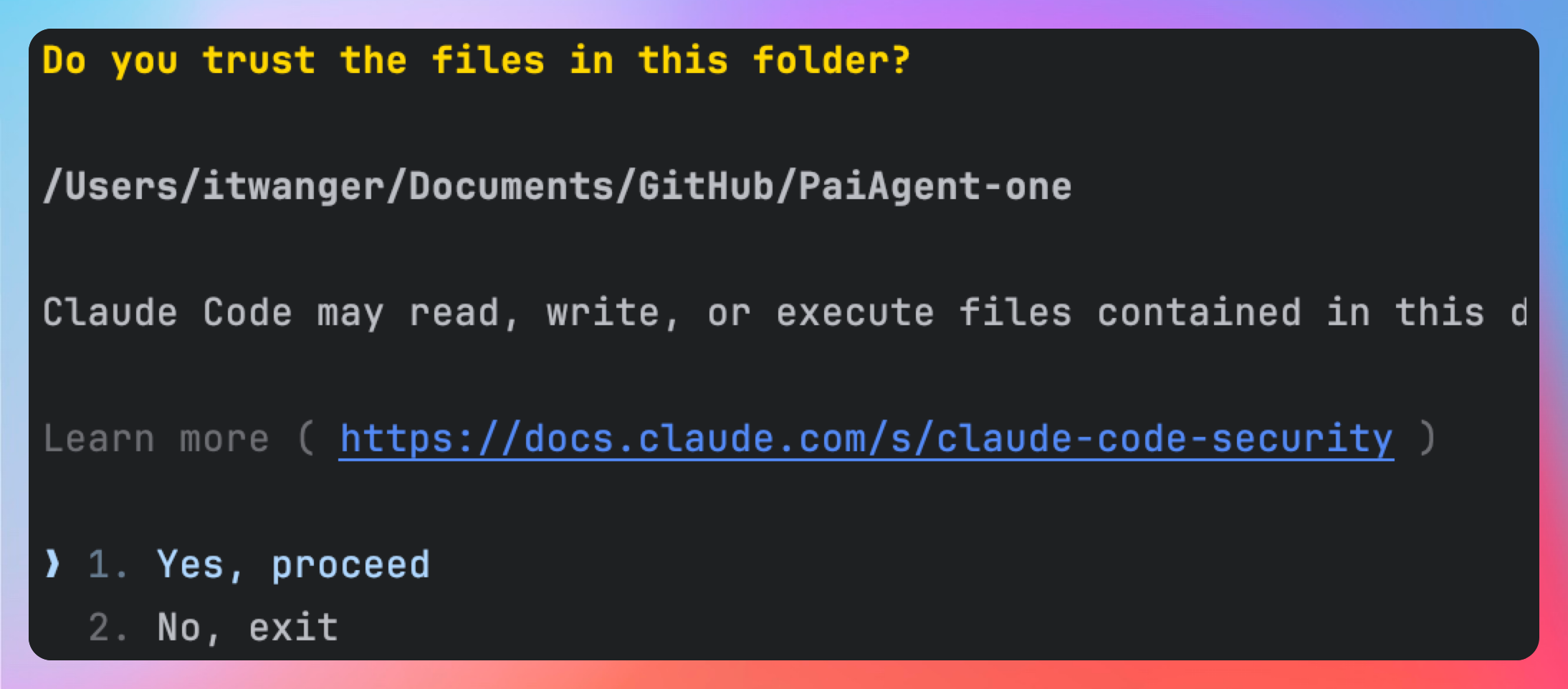 在 IntelliJ IDEA 中开启一个终端,键入 claude 准备启动 Claude Code,第一次需要们 trust 目录,选择 yes 继续。
