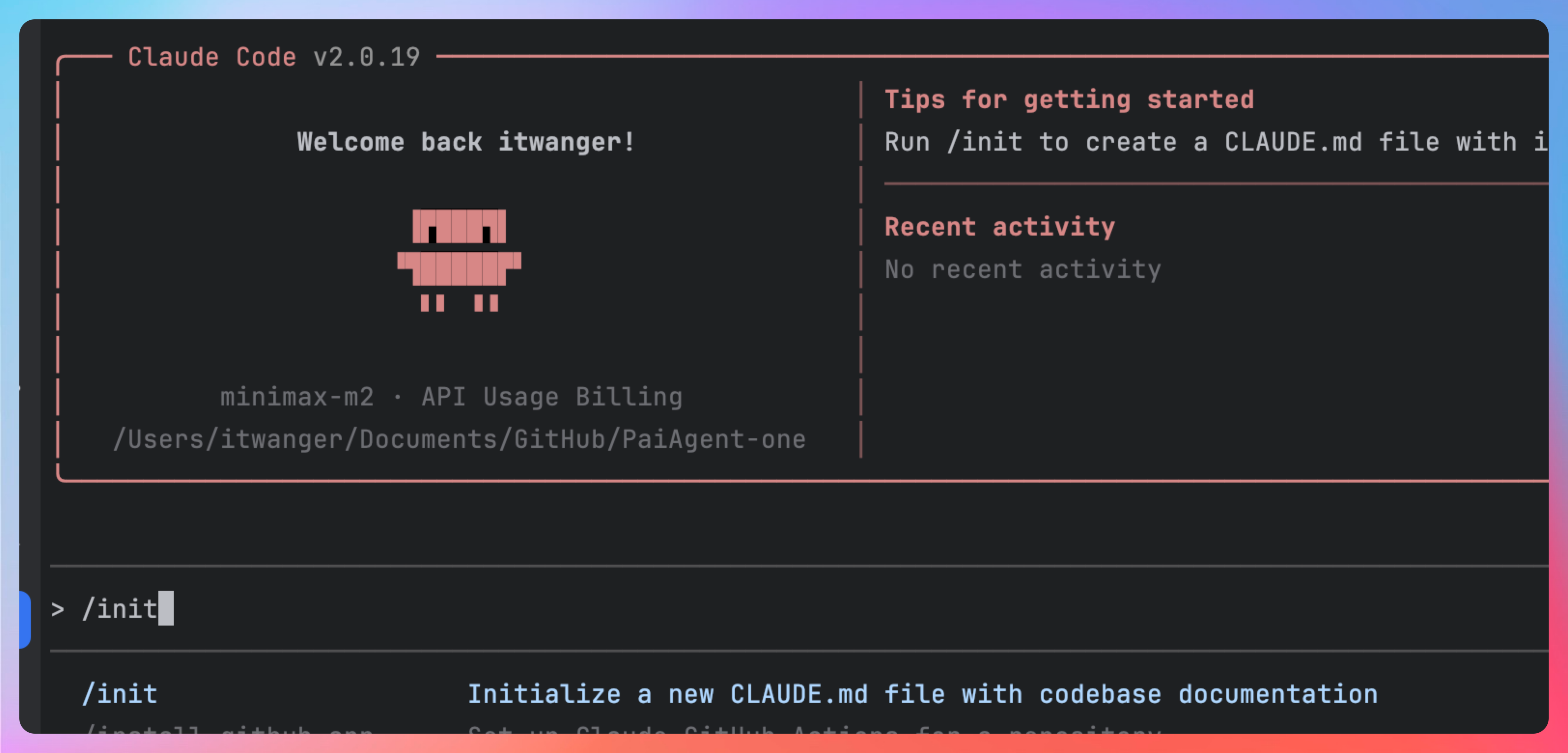 然后键入 /init 让 Claude Code 精读一下当前代码。
