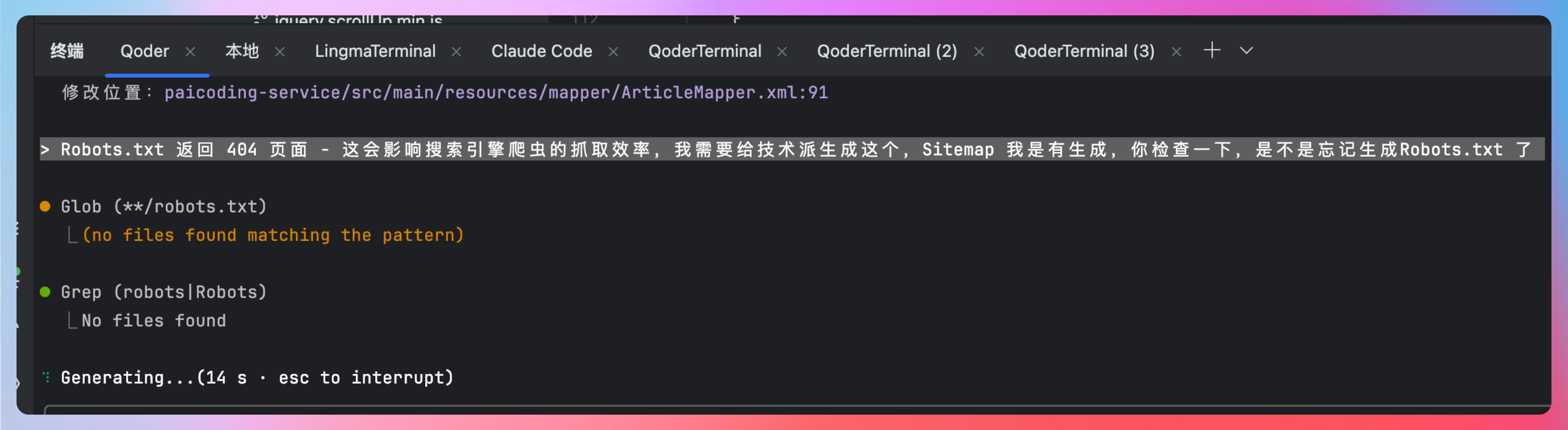 好,我们回到技术派源码的终端,让Qoder CLI来帮我们完成优化任务。