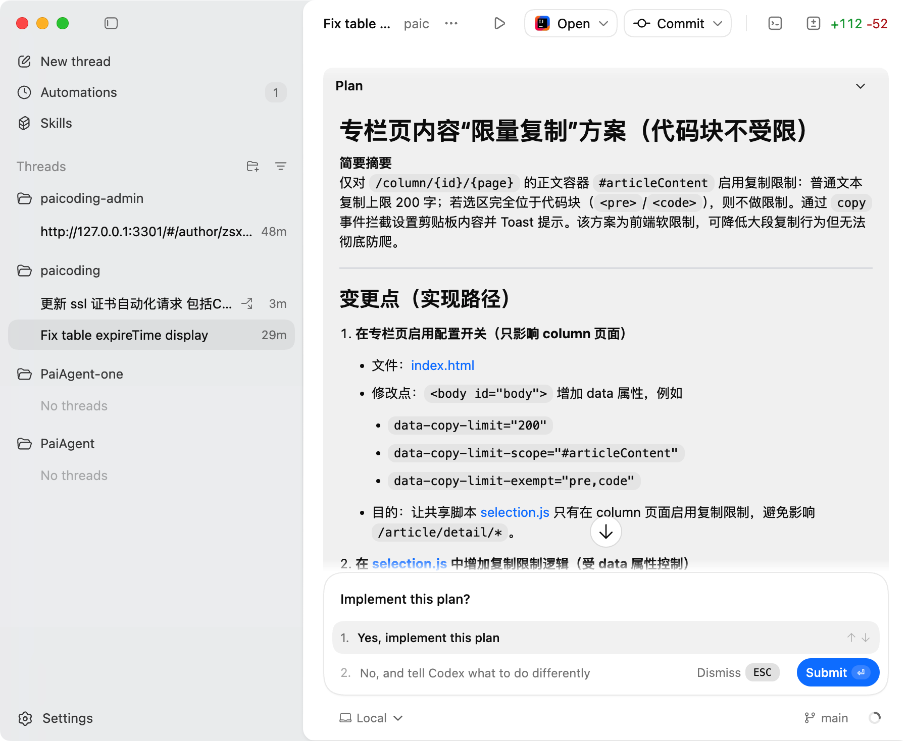 你可以直接修改这个计划,告诉它:这个方案不对,用另一种方式。它会重新规划,直到你满意为止。只有你点了执行,它才会真正开始改代码。