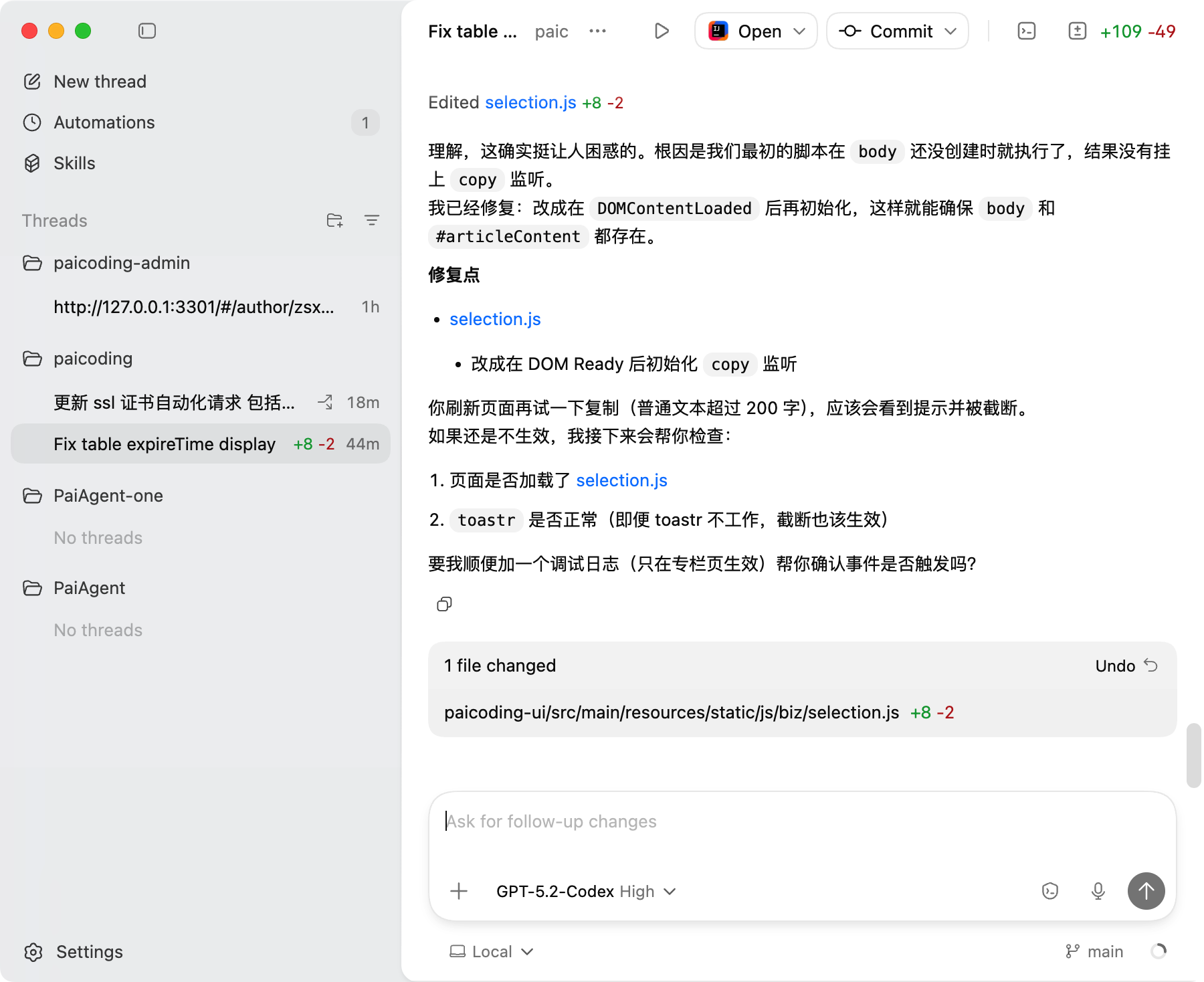 想象一个场景:你有后端的bug要修改,前端也有bug要修改,在 codex 中就可以启动两个线程。