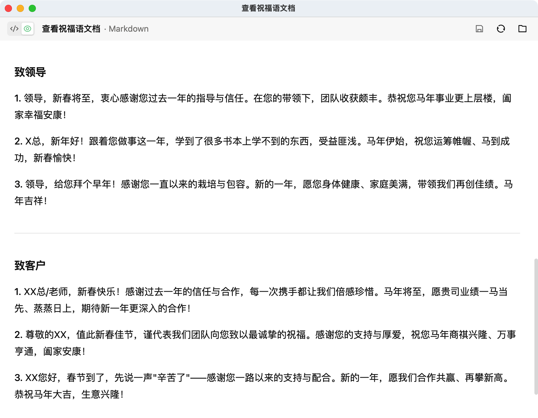 往年我都是复制粘贴,改个名字就发出去了。结果有次发错了模板,把给我那傻表哥的祝福发给了领导。