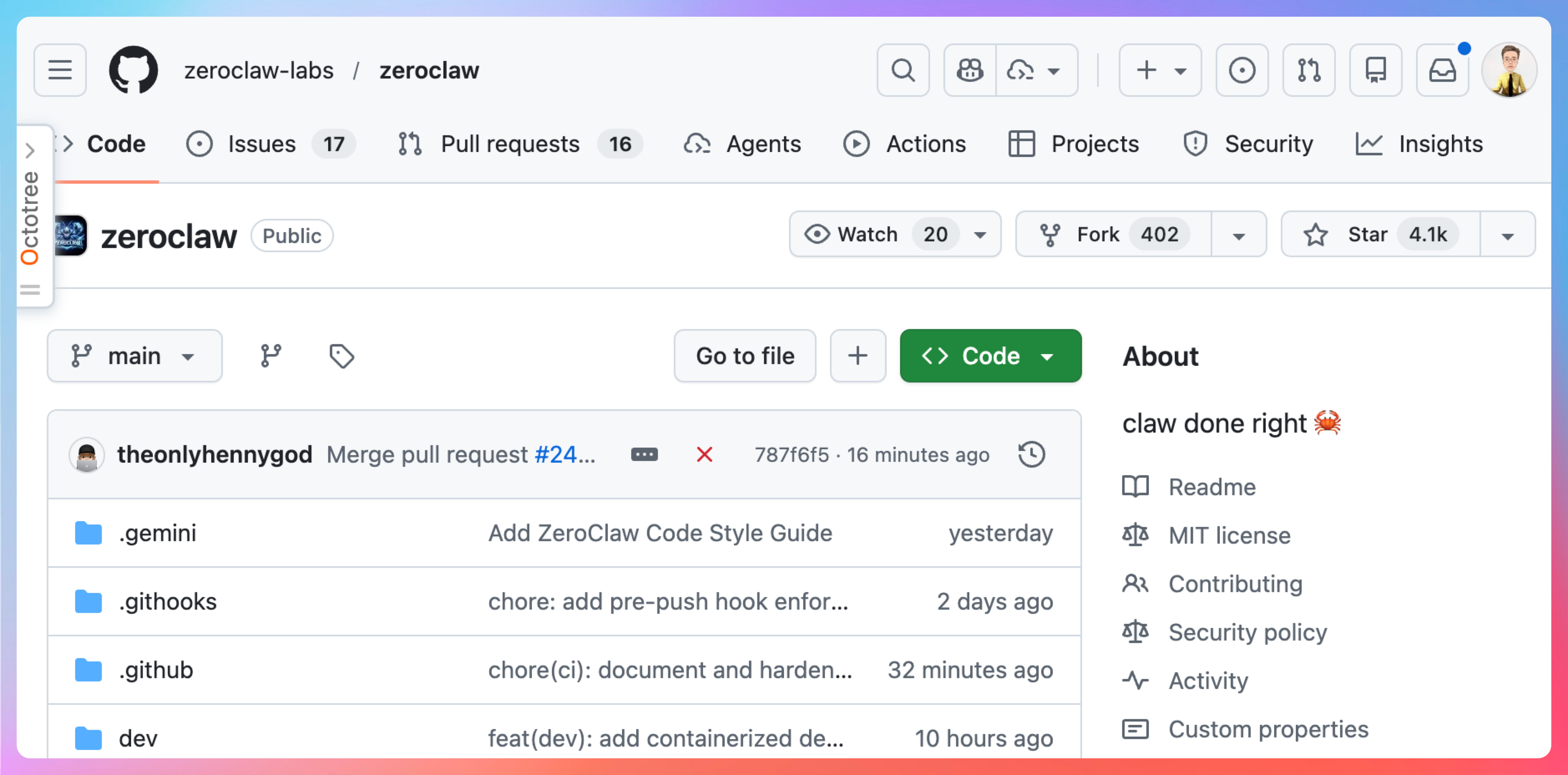 ZeroClaw 是 OpenClaw 的 Rust 重写版本。Rust 对这种需要长期运行的后台服务来说,简直是天作之合。