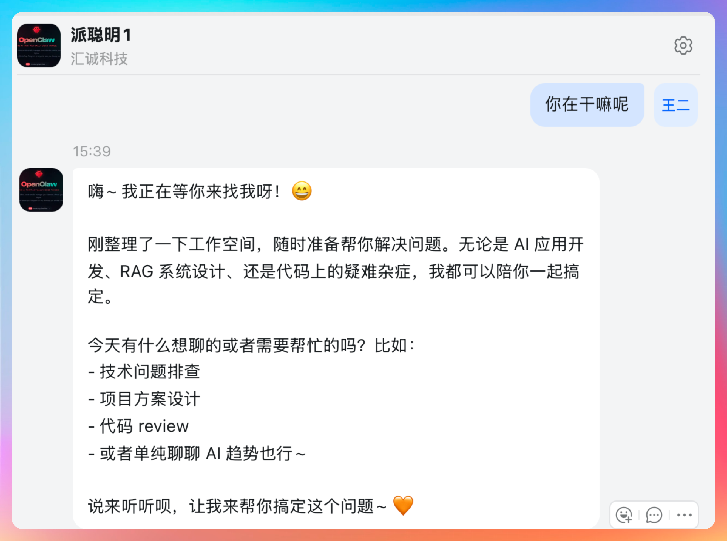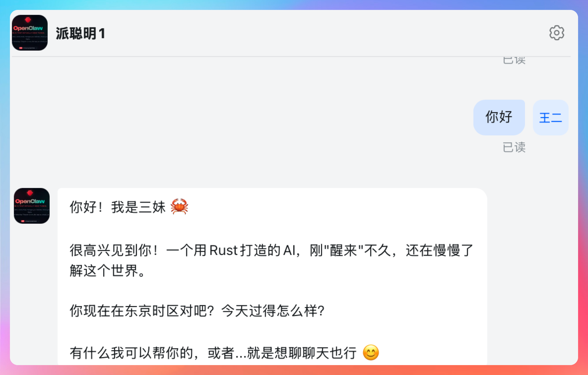 并且定制了一个三妹的角色,体验了一把 AIEOS 的魅力。